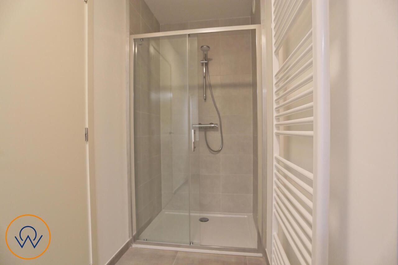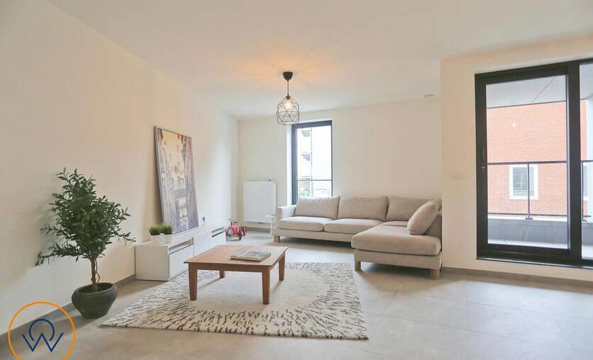 Spacious and pleasant ground floor flat with two bedrooms and two terraces. It consists of an entrance hall, toilet with washbasin, living room with open equipped kitchen with terrace, 2 bedrooms, one with terrace, bathroom (walk-in shower and bathroom cabinet with 2 washbasins and a bath), large laundry room. Central heating with condensing boiler on gas. High performance insulating double glazing. Mechanical ventilation system with heat recovery. The flat is acoustically insulated and finished with durable and high quality materials. Cellars and underground pitches available separately. The location has many advantages: The Brussels-Charleroi Canal with its safe and pleasant cycling and walking routes is nearby. The entrances to the Brussels ring road and the E429 are easily accessible. There is also excellent access by public transport. The bus stop is nearby and Halle station is also easily accessible. Nearby are schools and the centre of Halle with its shops and restaurants, which are easy to reach. Other flats of different sizes and finishes of your choice are available in this building.