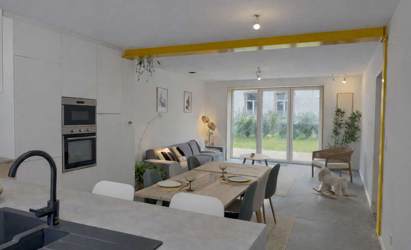 This semi-detached house on a plot of 2 ares 10 centiares is within walking distance of the centre of Herzele. Next to the house, there is space for two cars on a 4-metre-wide driveway, with a connection for a charging station.