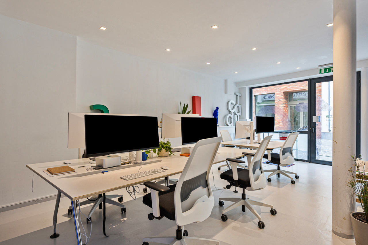 Ground floor office located in the Basiliekstraat in the center of Halle. Usable floor space of 63m2 with a convenient storage room/possible kitchen and a corridor with 2 separate toilets. Attractive office space with large windows letting in lots of natural light.