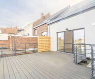 Le spacieux séjour avec cuisine ouverte constitue le cœur de l’appartement et bénéficie d’une belle luminosité naturelle grâce aux grandes fenêtres, créant une atmosphère chaleureuse et agréable. Atout supplémentaire : un grand toit-terrasse où vous pourrez profiter pleinement des beaux jours et de moments de détente.