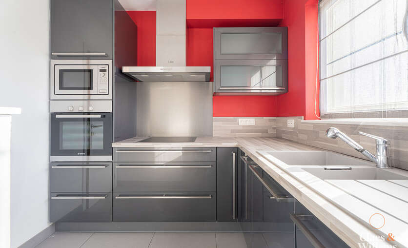 Bienvenue dans ce spacieux appartement duplex économe en énergie situé à Sint-Pieters-Leeuw/Ruisbroek. L'appartement est situé au premier et au deuxième étage du bâtiment, avec un grenier. Au premier étage, vous trouverez un hall d'entrée avec des toilettes séparées, un spacieux salon ouvert - entièrement entouré de grandes fenêtres qui laissent entrer beaucoup de lumière naturelle - et la cuisine, entièrement équipée d'appareils électroménagers de qualité, idéale pour ceux qui aiment cuisiner confortablement. Adjacente à la cuisine, vous trouverez une buanderie pratique. Le salon donne accès à la terrasse. Au deuxième étage, vous trouverez 3 chambres spacieuses et bien éclairées, 2 salles de bains - l'une avec baignoire et double lavabo, l'autre avec douche à l'italienne. Il y a également des toilettes séparées et une buanderie pratique. En prime, l'appartement dispose d'un grenier entièrement aménagé/habitable de pas moins de 35 m². L'appartement est parfaitement situé, à proximité de toutes les commodités et des transports en commun. Chauffage central au gaz avec chaudière récemment rénovée et inspection électrique conforme. INCLUS DANS LE PRIX : 2 CELLIERS ET UN GARAGE. Ne manquez pas l'occasion de visiter ce duplex et contactez-nous. Nous nous réjouissons de vous accueillir.
