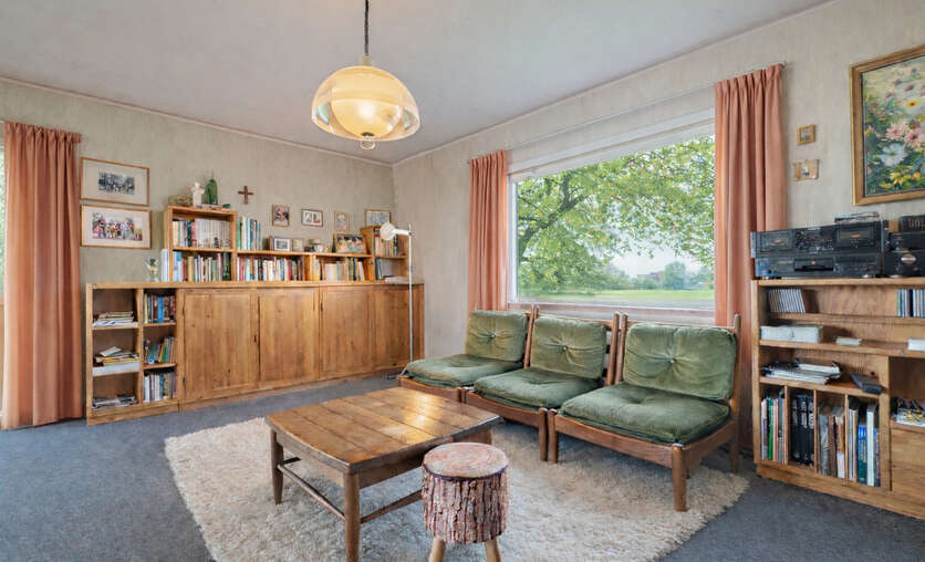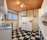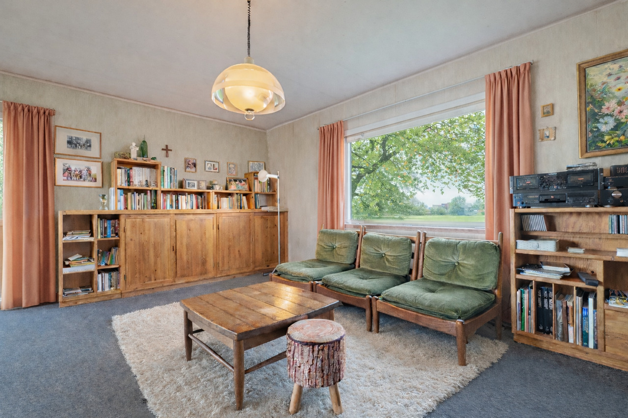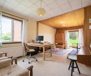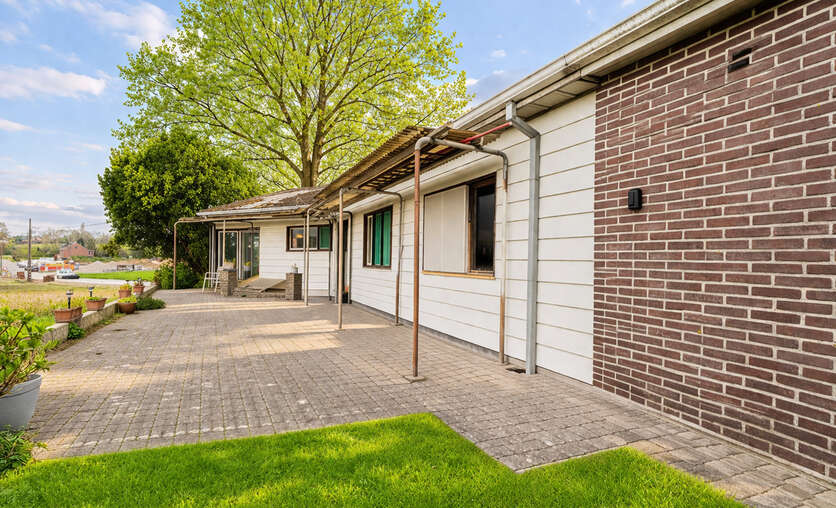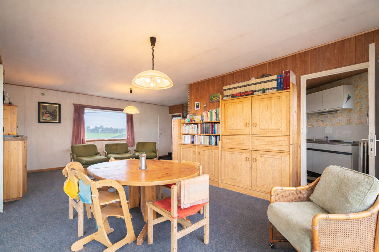 Bungalow de 1968 avec une sixties vibe très sympa, situé au calme dans une rue rénovée, sur un terrain de 12a42ca en zone agricole. Parfaitement habitable, mais à rénover en profondeur à terme ou à démolir pour reconstruction.