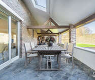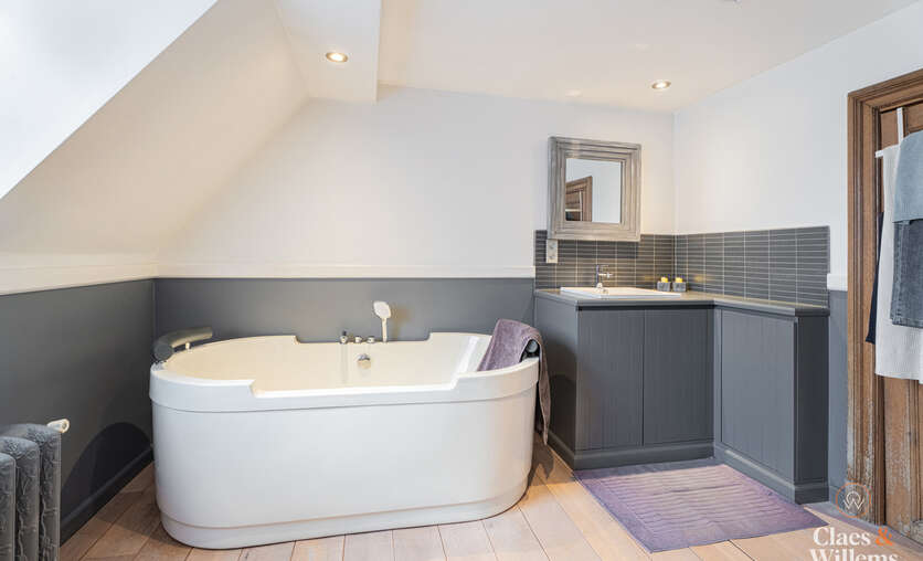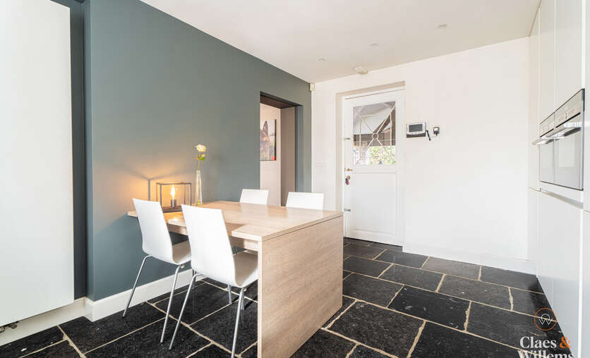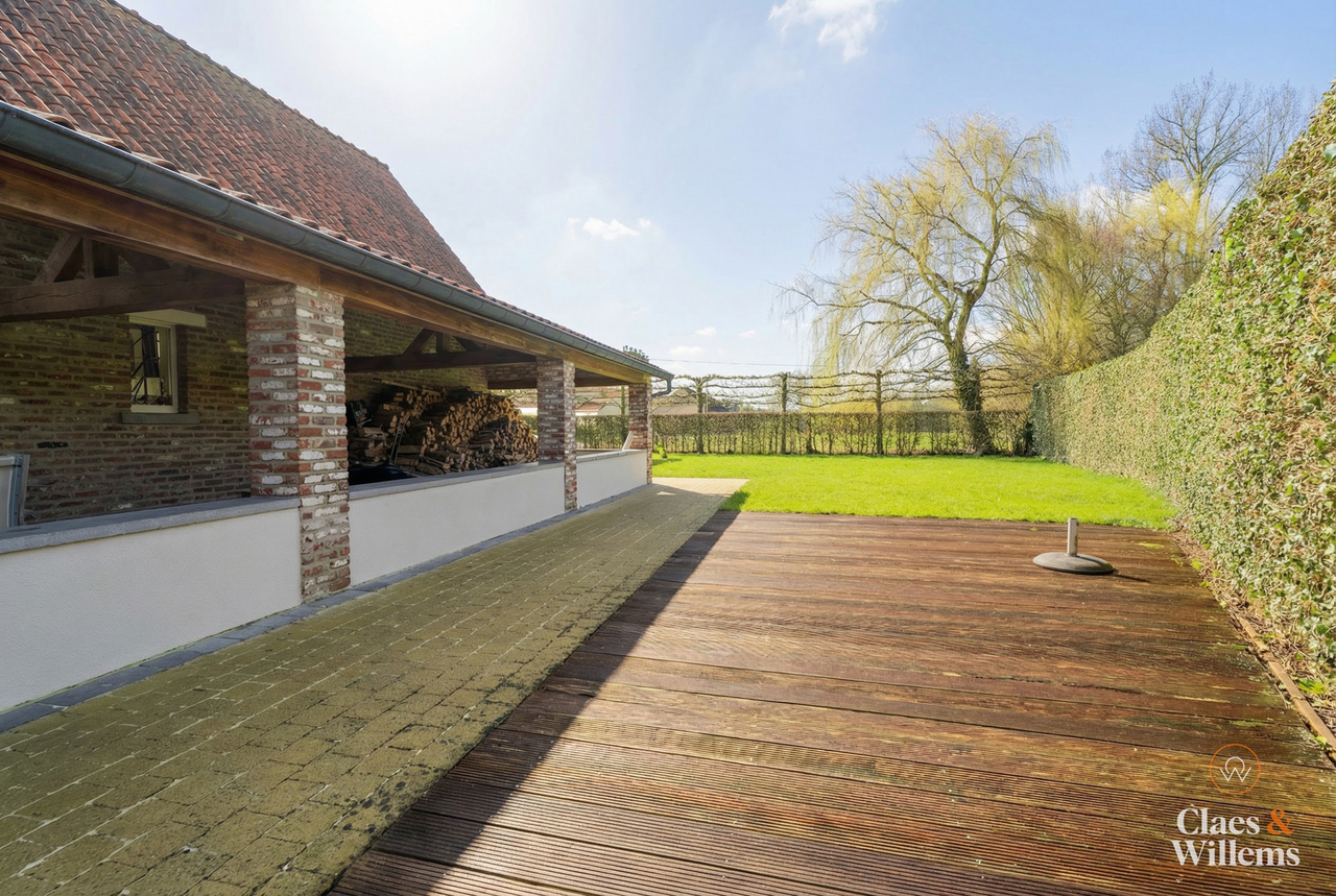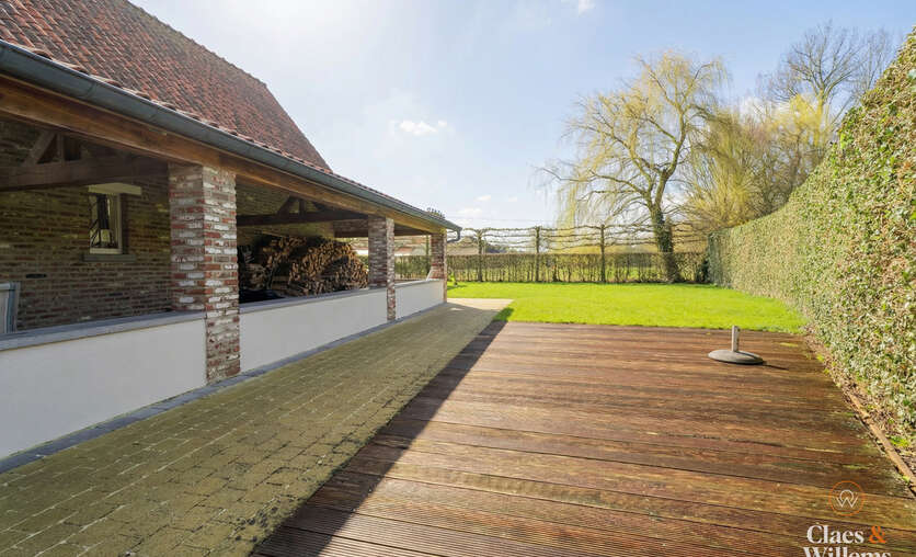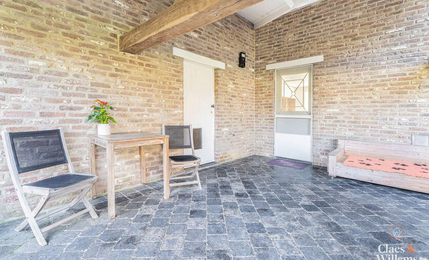 La propriété bénéficie d’une terrasse couverte et d’un jardin entièrement clôturé. Le garage est équipé d’une trappe pour chien. Plus d’informations via www.claeswillems.be