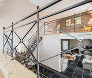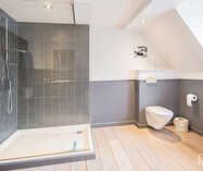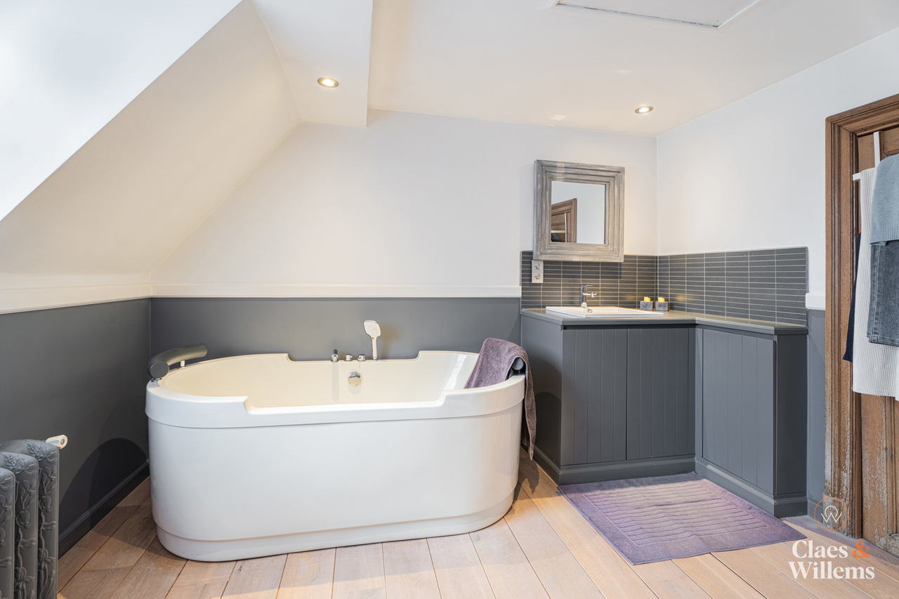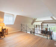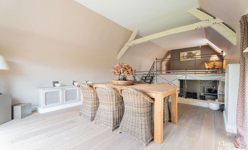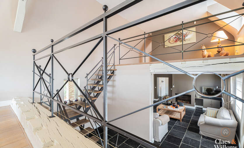 À l’étage se trouvent trois chambres spacieuses et une salle de bain avec baignoire, douche et toilette. La mezzanine avec vue sur la salle à manger peut être aménagée en bureau, coin lecture ou chambre supplémentaire.