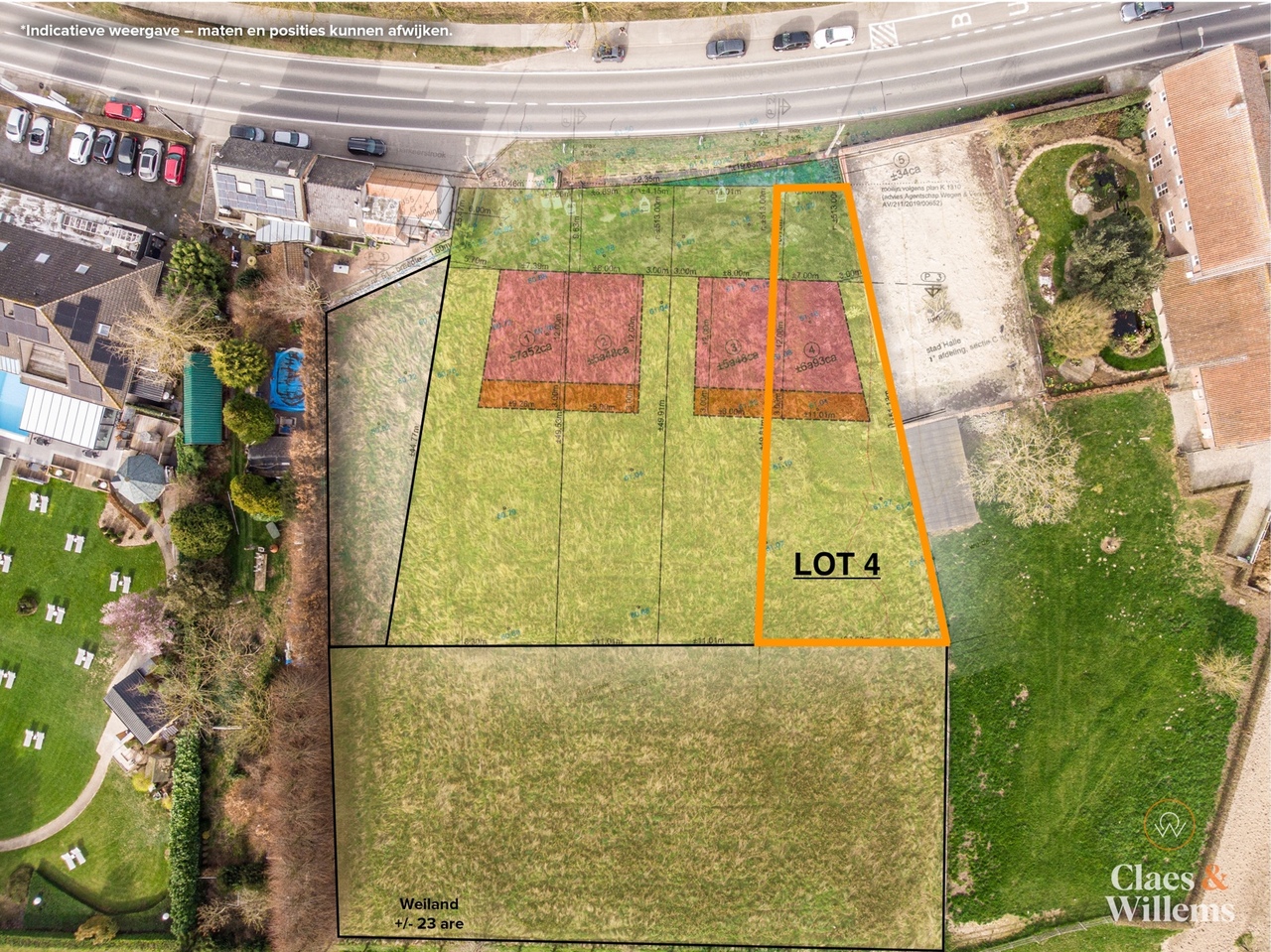 Deze bouwgrond is gelegen langs de Ninoofsesteenweg in Halle, op een bijzonder praktische locatie tussen het centrum van Halle en Pepingen. Het centrum van Halle bevindt zich op slechts 2,4 km, terwijl het centrum van Pepingen op 3,3 km ligt. Dagelijkse voorzieningen zijn vlakbij: een supermarkt bevindt zich op 2,4 km, een school op 1,8 km en een bushalte op amper 17 meter van het perceel. Het station van Halle ligt op 4 km afstand.