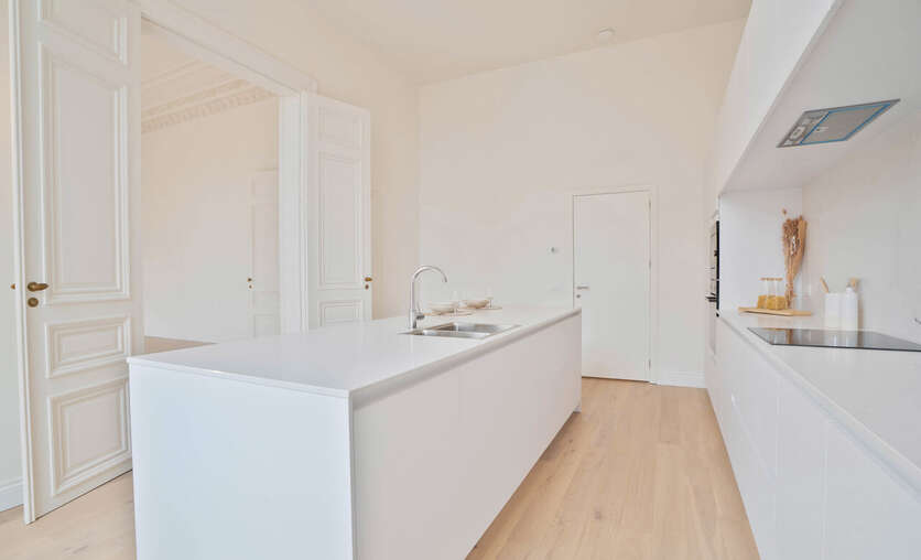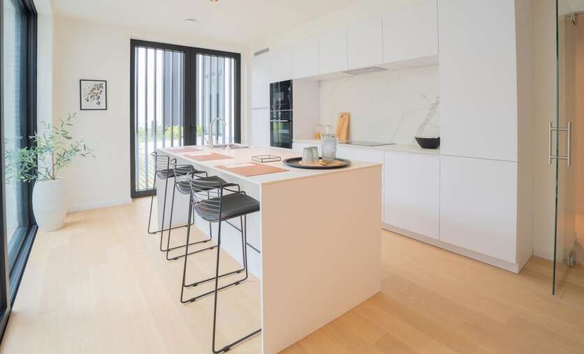 De appartementen stralen elegantie uit, met hoge plafonds en een hoogwaardige afwerking. Elk woonvolume werd ontworpen met oog voor ruimte, licht en verfijnd.