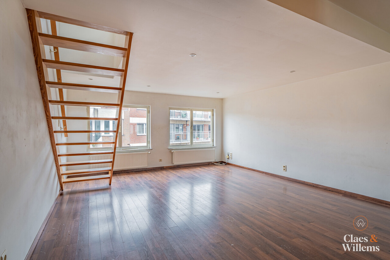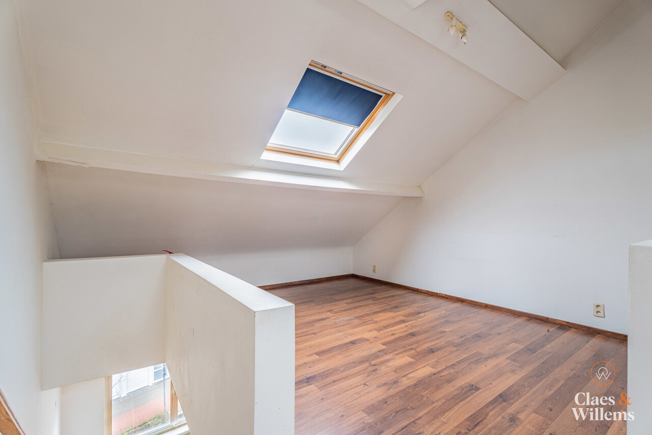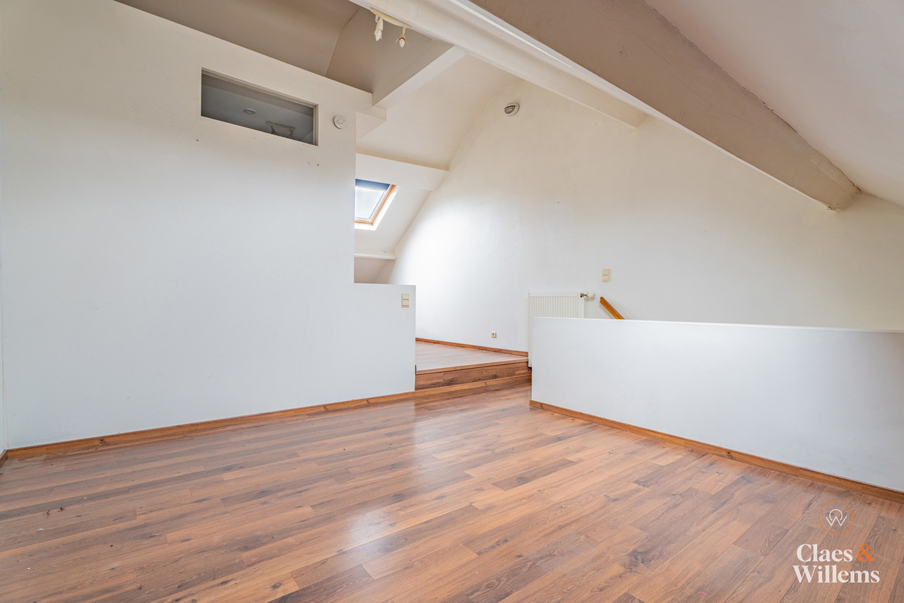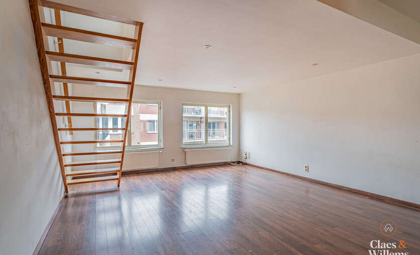 Dit aangename duplexappartement met één slaapkamer is praktisch ingedeeld en biedt een comfortabele woonervaring. Op de benedenverdieping bevindt zich een lichtrijke leefruimte met open keuken, met directe toegang tot een gezellig terras in de middenkoer, ideaal om rustig buiten te genieten. Op de bovenverdieping bevindt zich de badkamer en de slaapkamer.