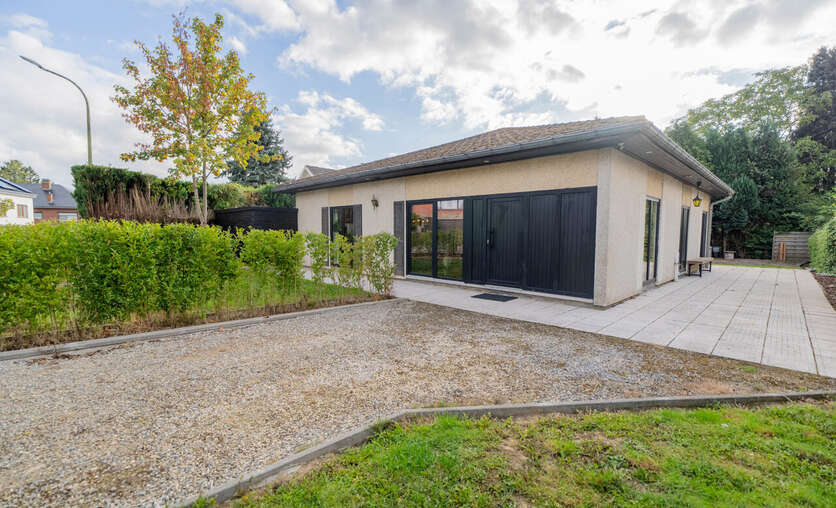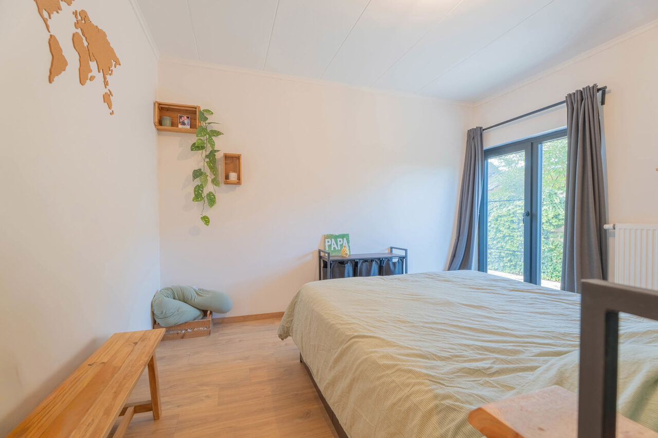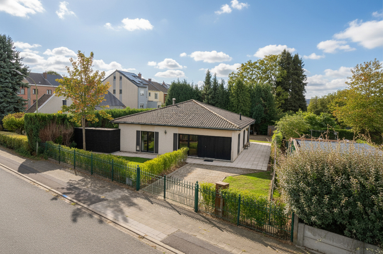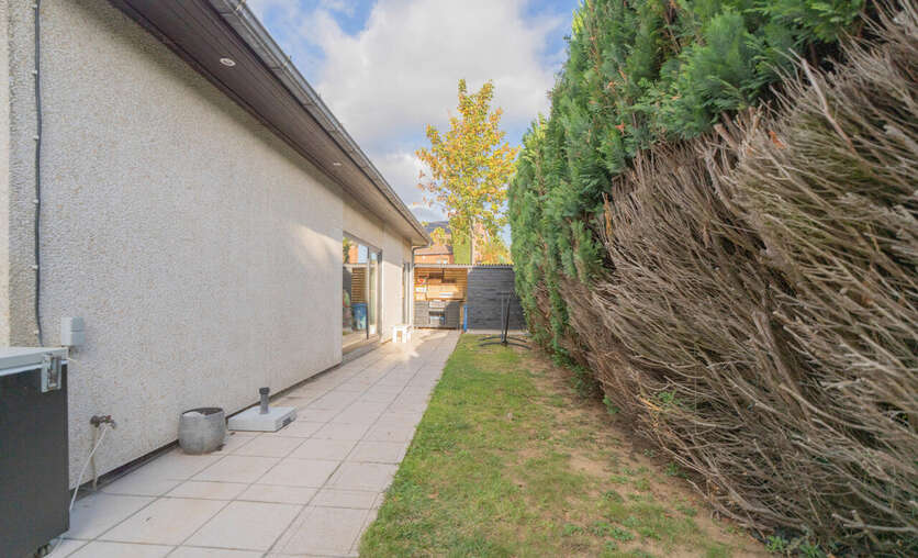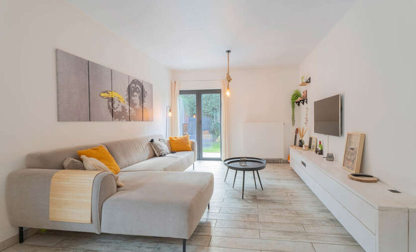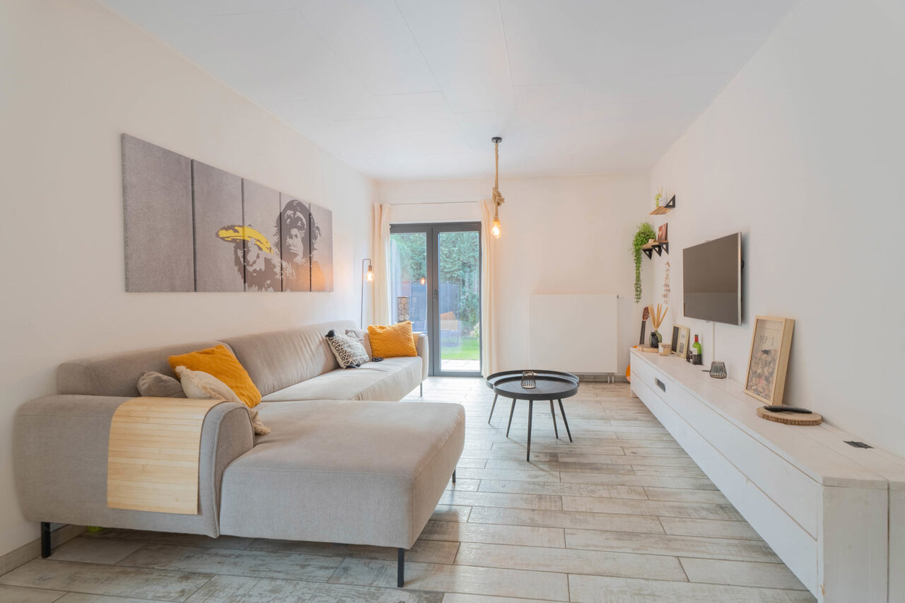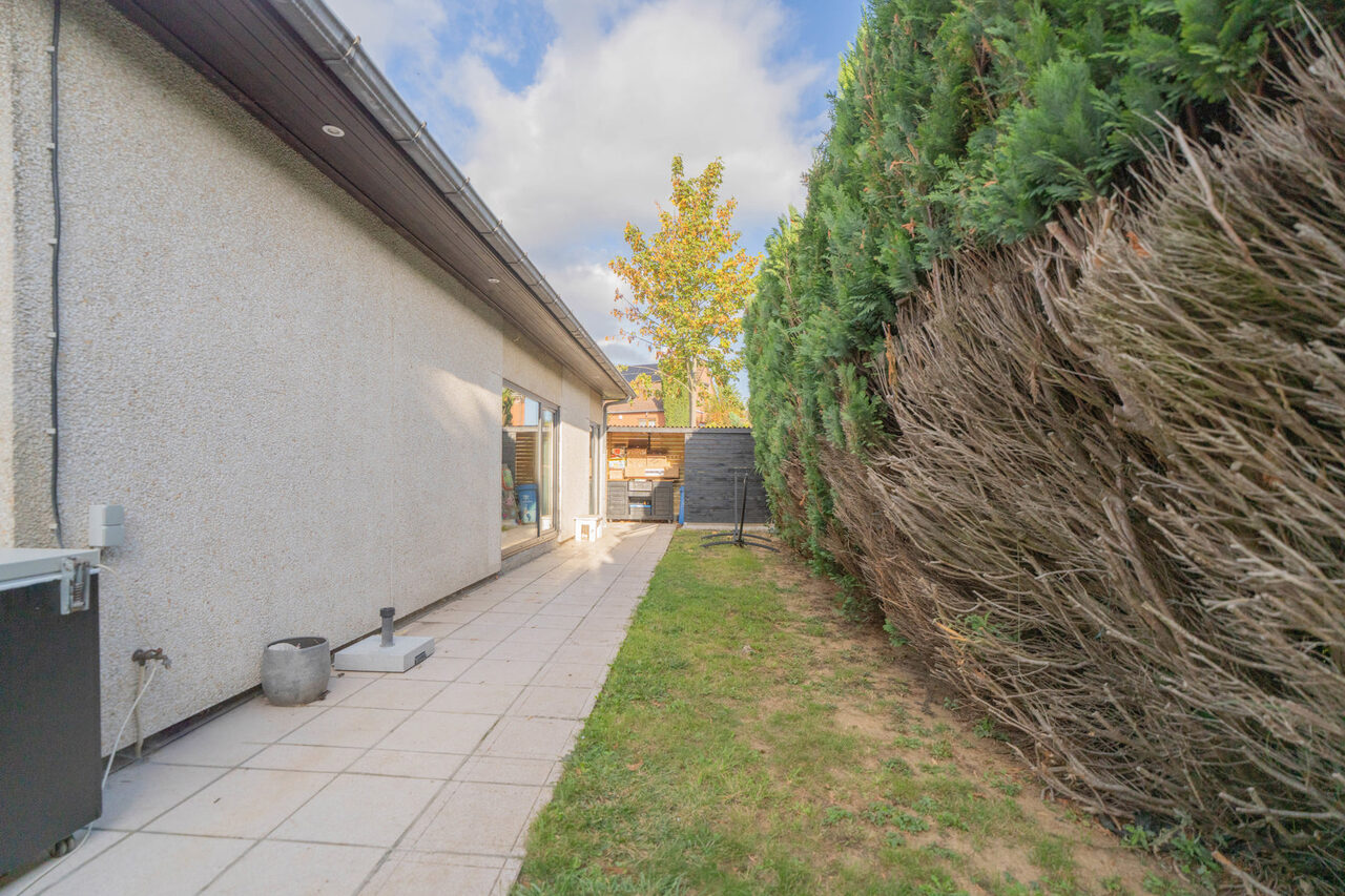 De woning beschikt over twee slaapkamers, waarvan één voorzien is van een dressing, en een moderne badkamer met inloopdouche en wastafel. Daarnaast biedt de onderhoudsvriendelijke tuin alle mogelijkheden om te ontspannen. De aparte garage, bereikbaar via de oprit, zorgt voor extra comfort en opbergruimte.