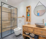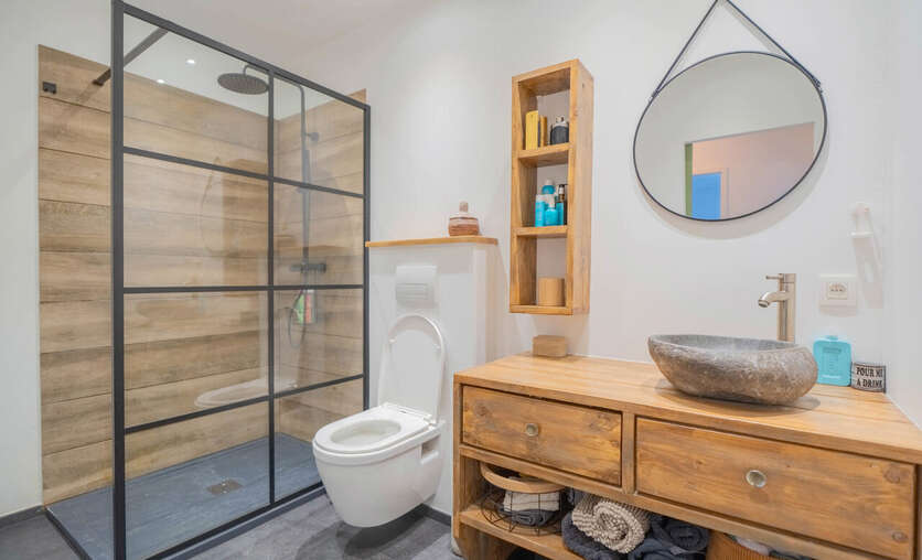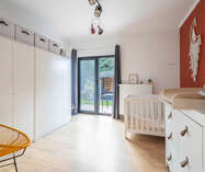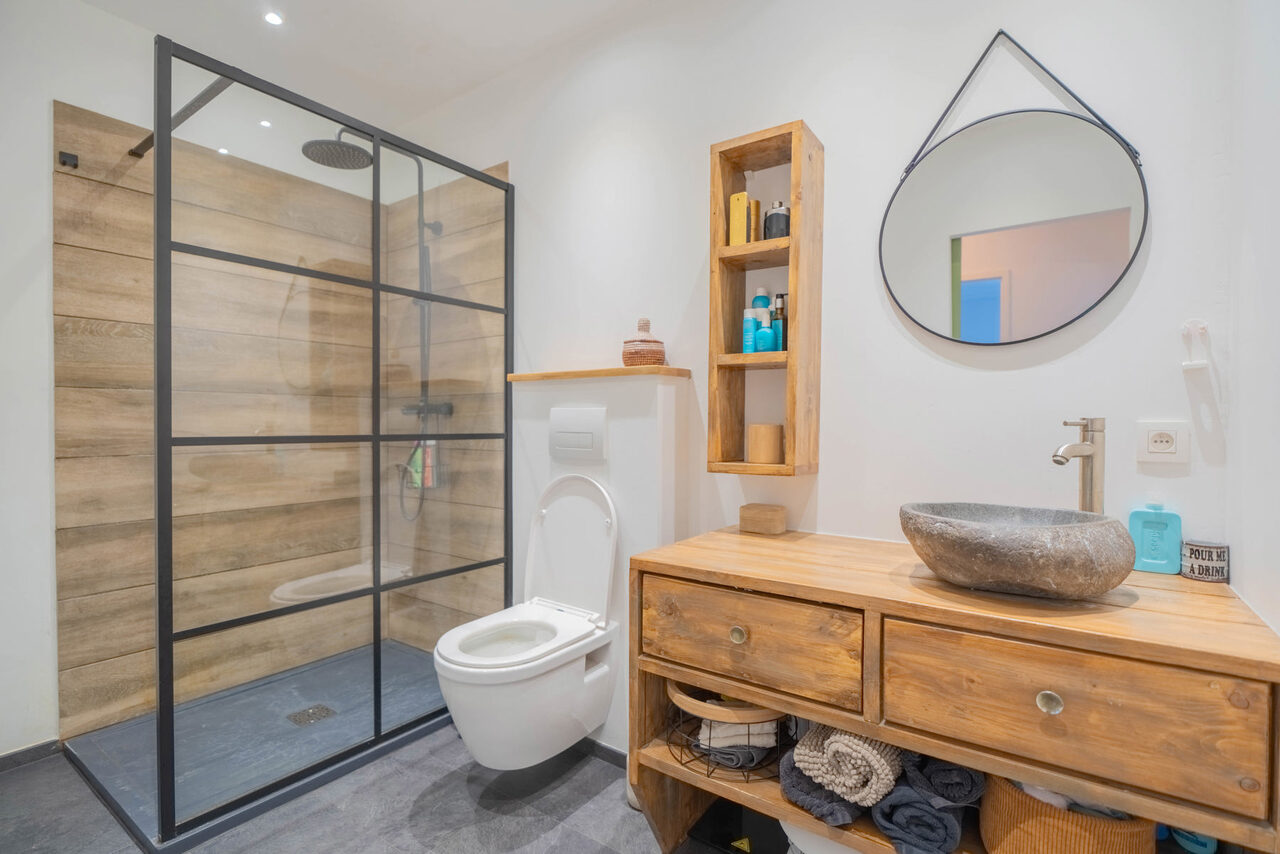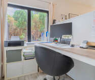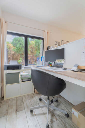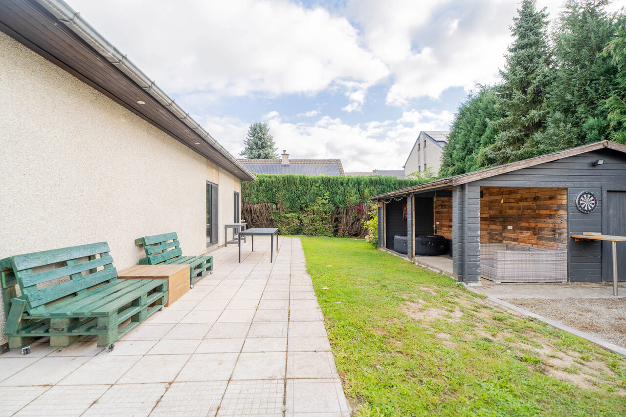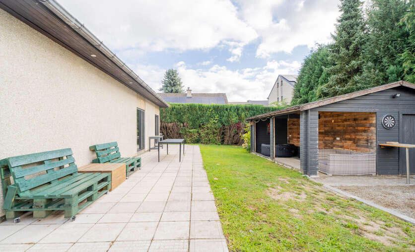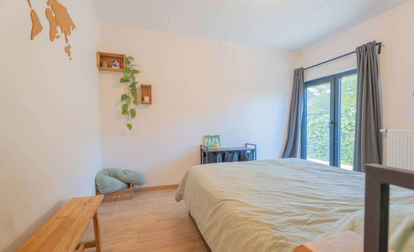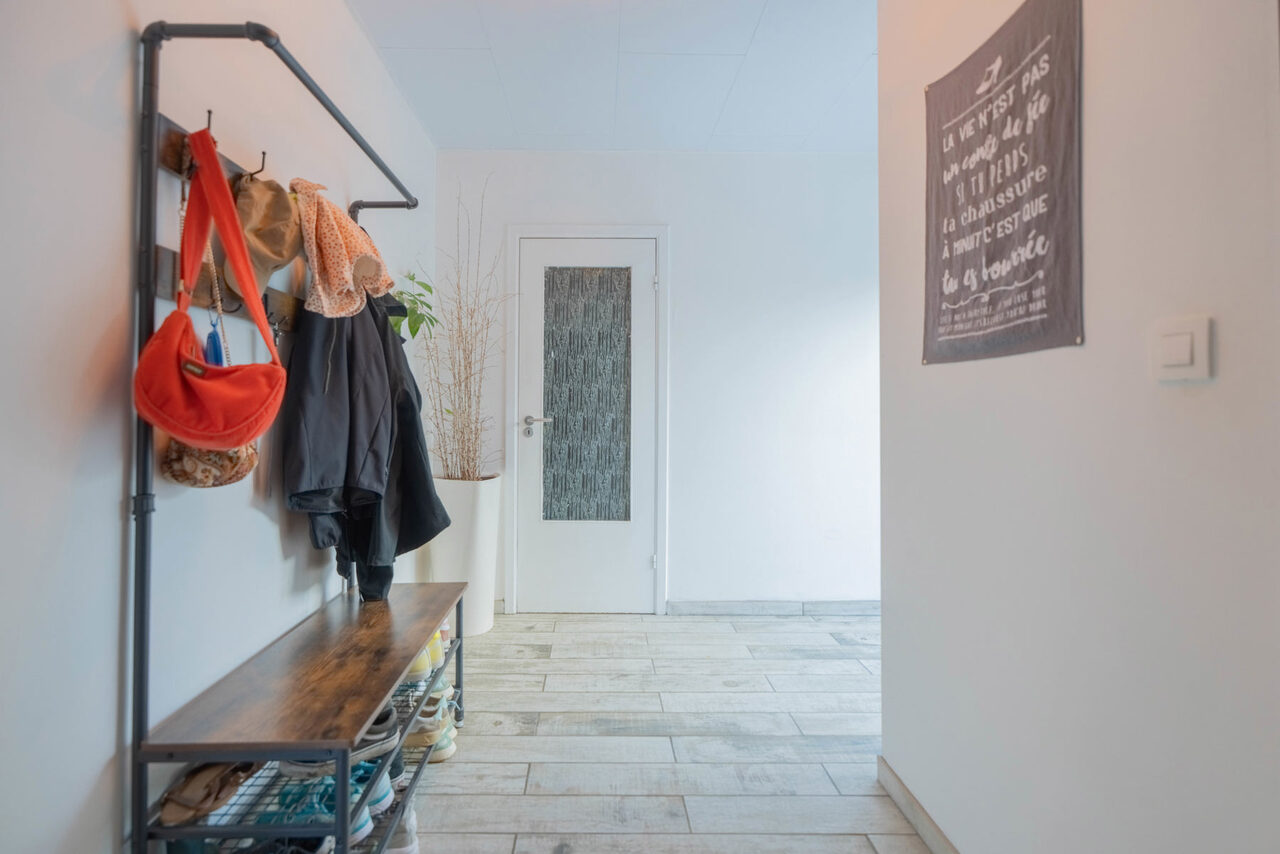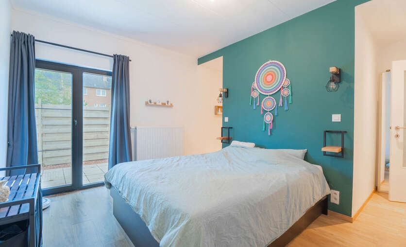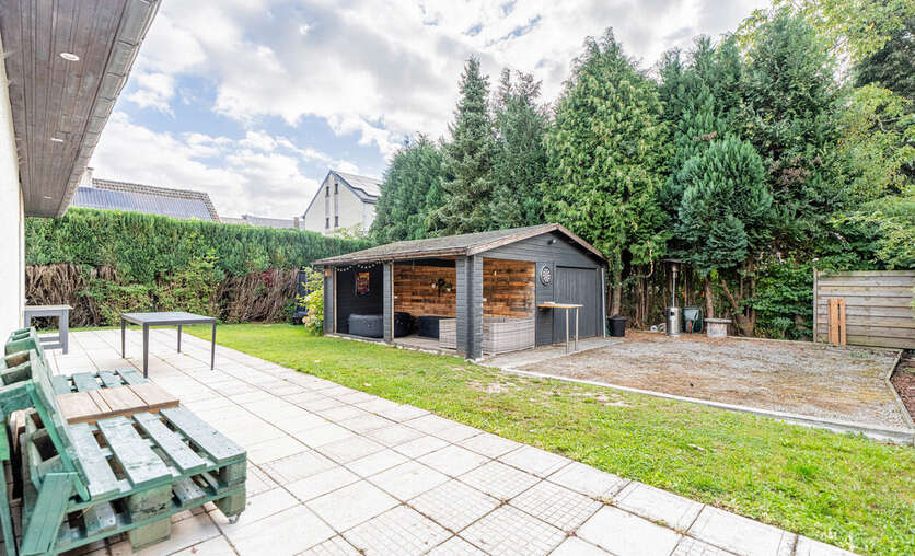 De woning beschikt over twee slaapkamers, waarvan één voorzien is van een dressing, en een moderne badkamer met inloopdouche en wastafel. Daarnaast biedt de onderhoudsvriendelijke tuin alle mogelijkheden om te ontspannen. De aparte garage, bereikbaar via de oprit, zorgt voor extra comfort en opbergruimte.