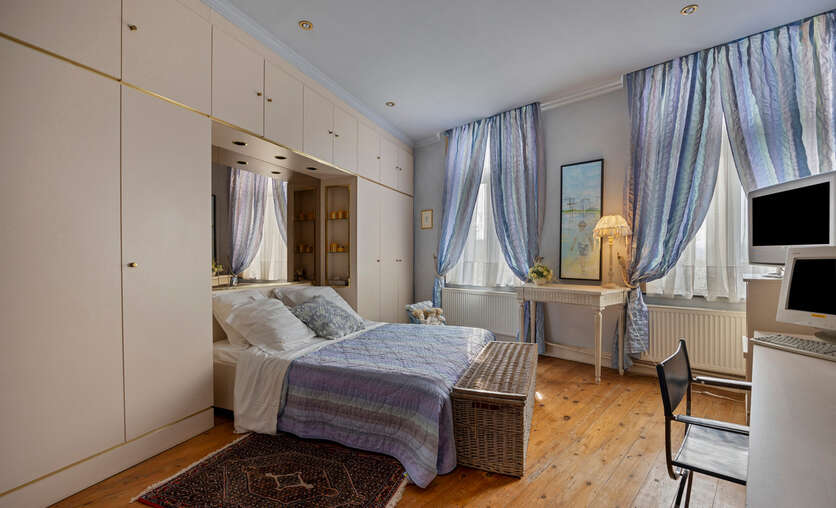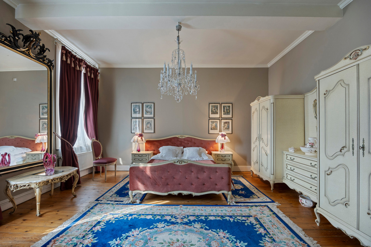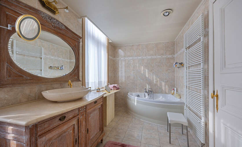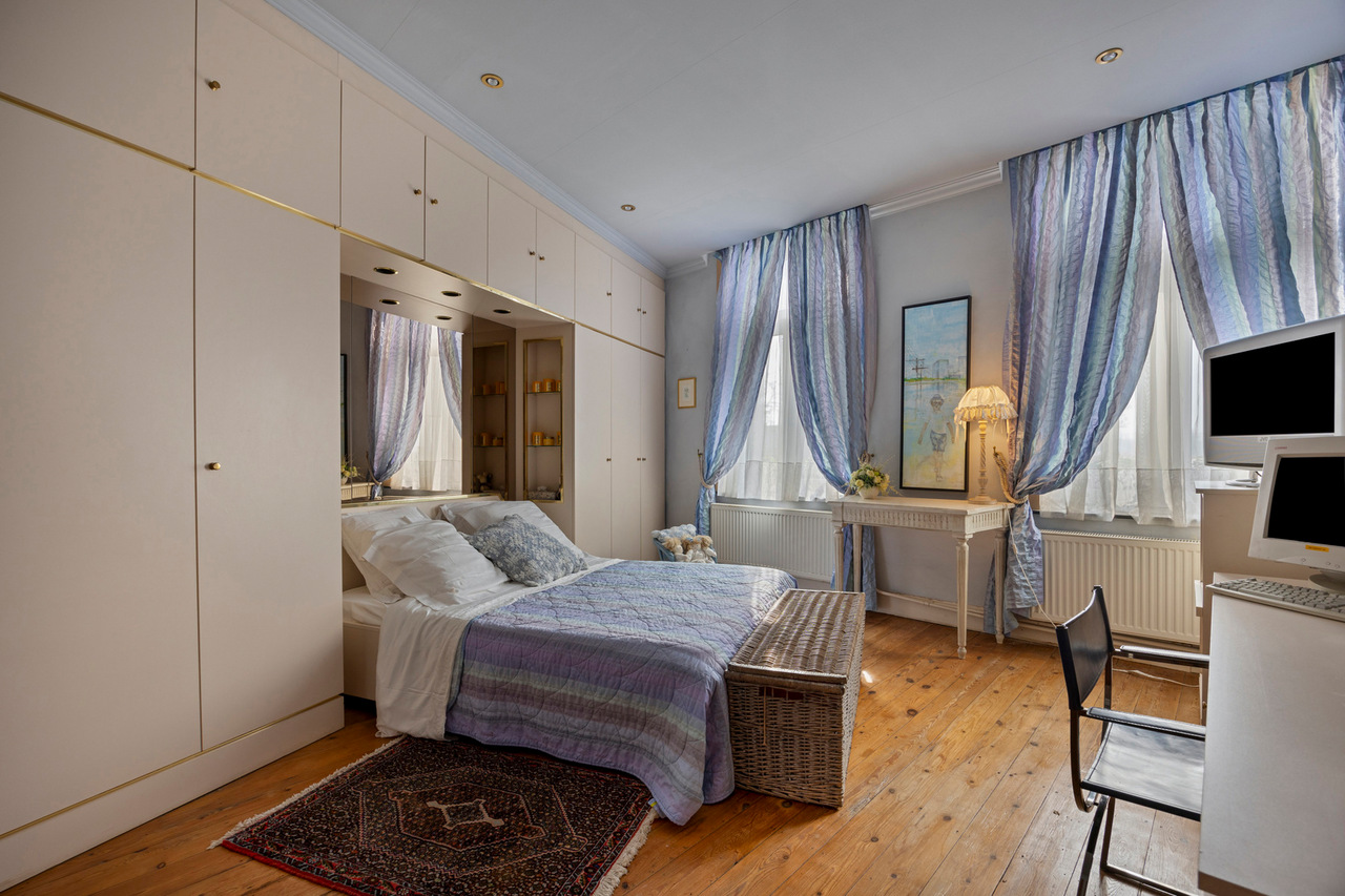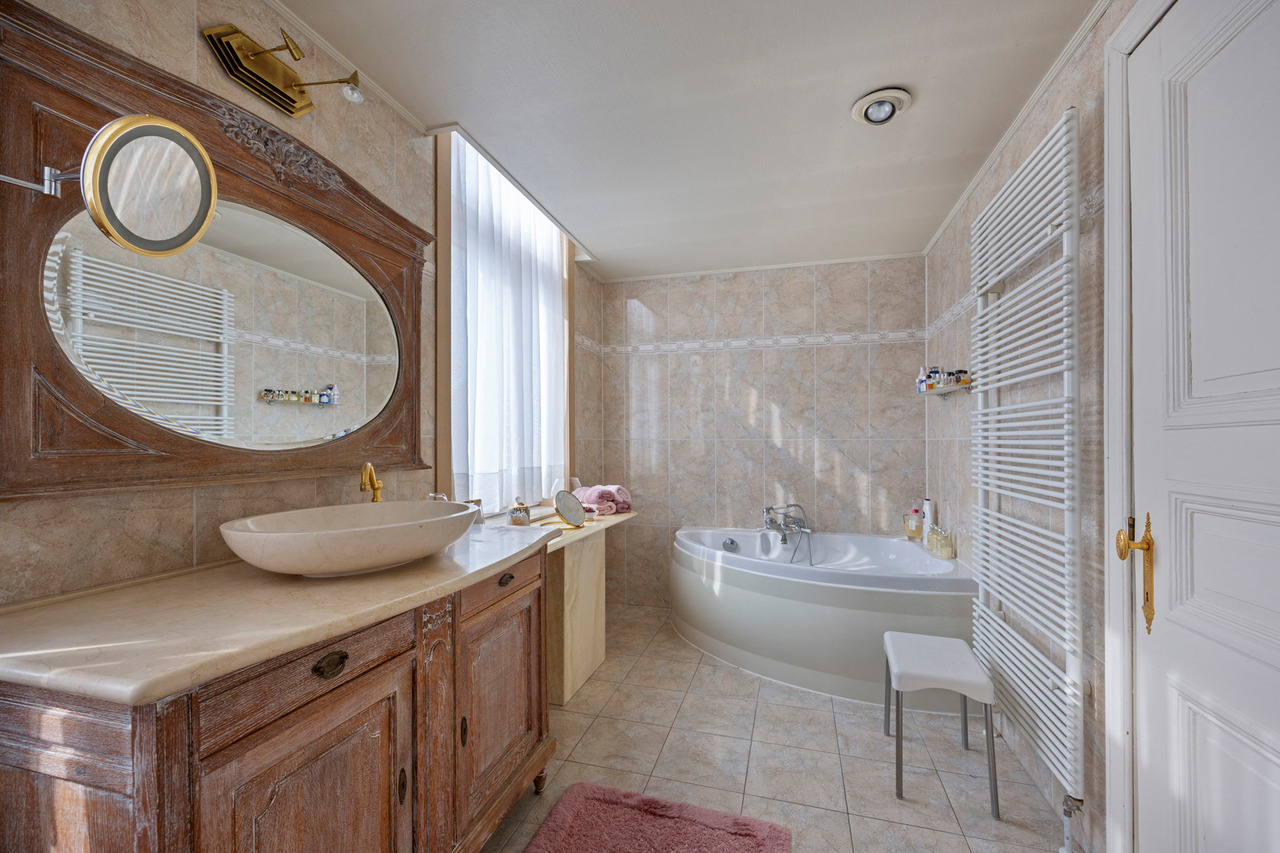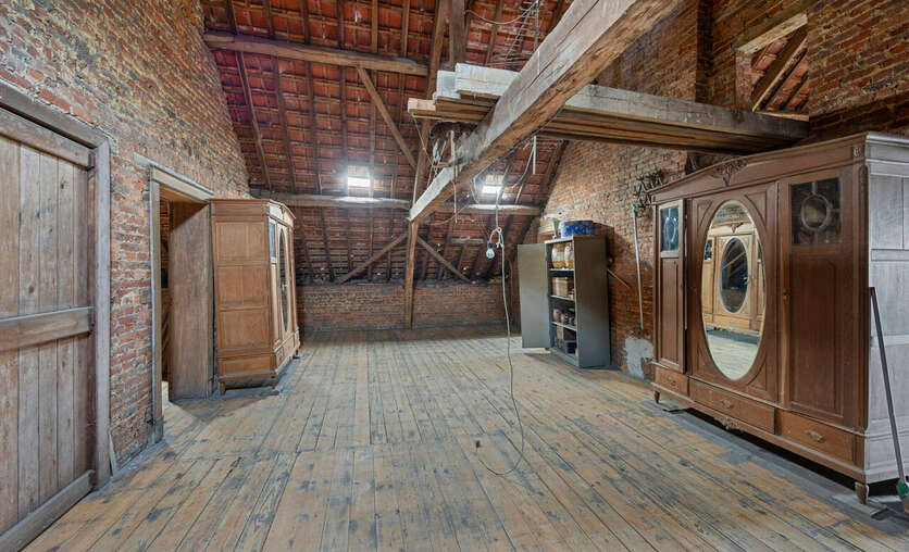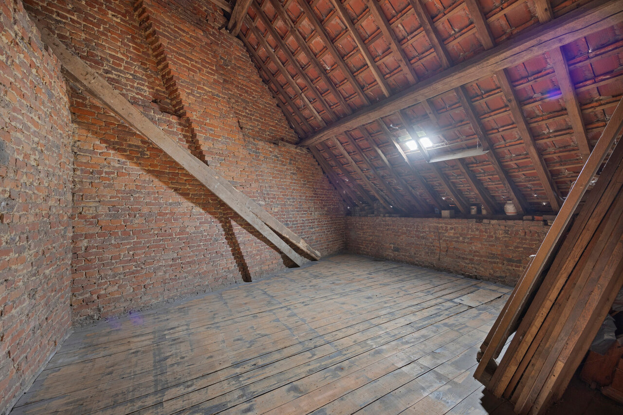 Op de eerste verdieping vindt u een ruime woonkamer, twee grote slaapkamers en een badkamer met ligbad, douche en dubbele wastafel. De zolder biedt nog mogelijkheden om drie tot vier extra slaapkamers te creëren.