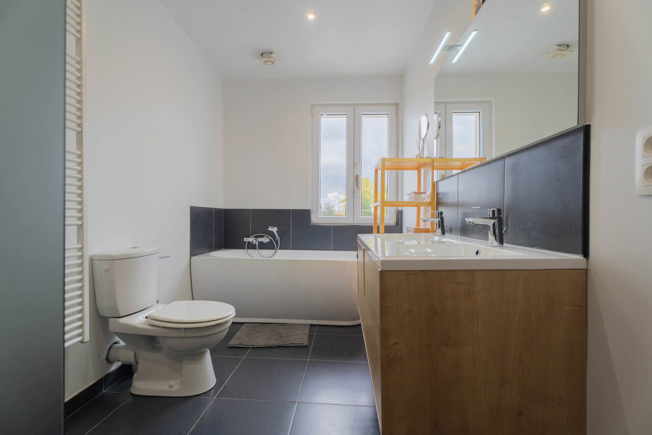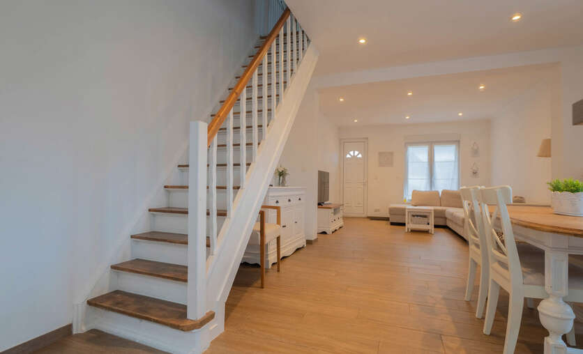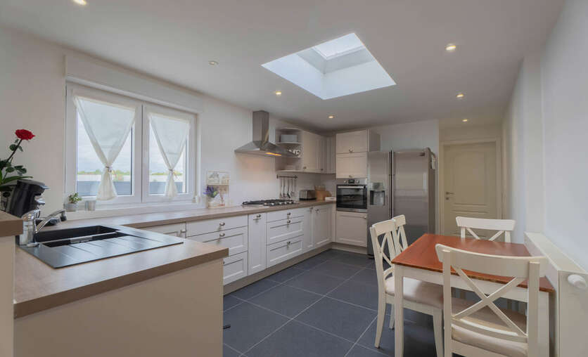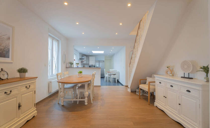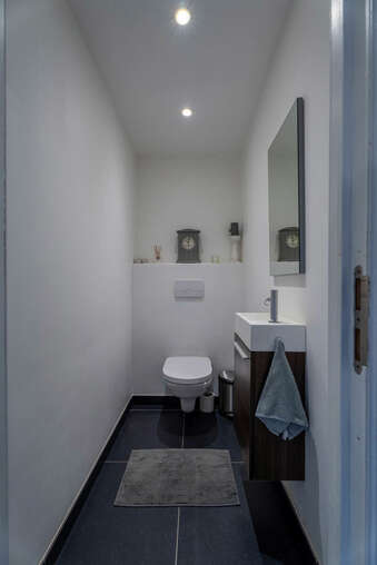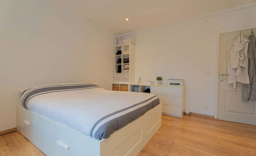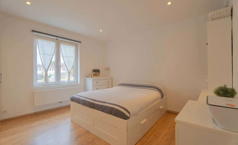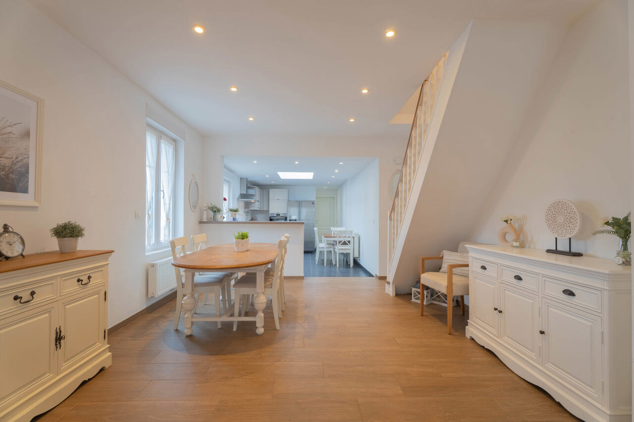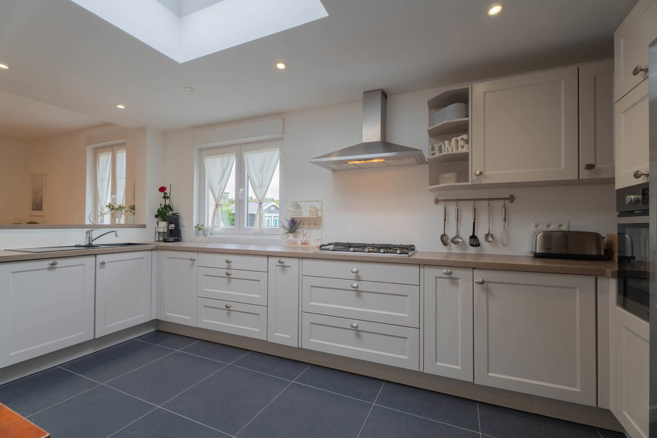 Ontdek deze rustig gelegen, toch dicht bij alle faciliteiten gezinswoning. De woning werd in 2017 gerenoveerd en bestaat uit een ruime woonkamer met eetplaats en open keuken, een ruime berging/wasplaats en apart toilet, op de eerste verdieping bevind zich een eerste slaapkamer en een badkamer met ligbad, inloopdouche, dubbele wastafel en wc, de zolderverdieping werd volledig ingericht tot 2 slaapkamers. Geniet van alle rust in de zuid georiënteerde tuin met zicht op de velden.