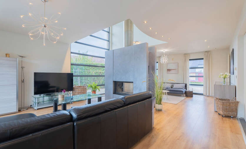 Deze moderne gezinswoning van ca. 400 m² op een perceel van 35 are biedt ruimte, comfort en klasse op een toplocatie in het groen, op wandelafstand van het station.