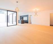 Bij het binnenkomen wordt u verwelkomd in een inkomhal met een apart gastentoilet. De lichtrijke grote leefruimte met een volledig uitgeruste open keuken, voorzien van moderne toestellen en een praktische berging. Vanuit de leefruimte heeft u toegang tot een gezellig terras — ideaal voor een ochtendkoffie of een ontspannen avond.