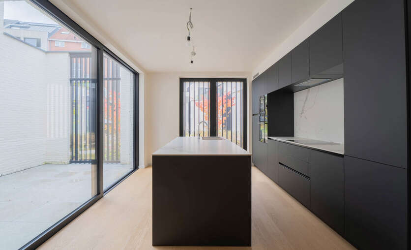 In het hart van Gent Zuid, verscholen achter een privé binnenkoer die exclusief toegankelijk is voor de bewoners, bevindt zich deze eigentijdse woning binnen een kleinschalig nieuwbouwproject van zes unieke huizen. Zodra je de woning binnenstapt, word je verwelkomd door een ruime inkomhal die meteen een gevoel van rust en ruimte uitstraalt. Het gastentoilet bevindt zich naast de inkom, waarna je doorloopt naar een lichtrijke leefruimte met een open, volledig uitgeruste keuken.
