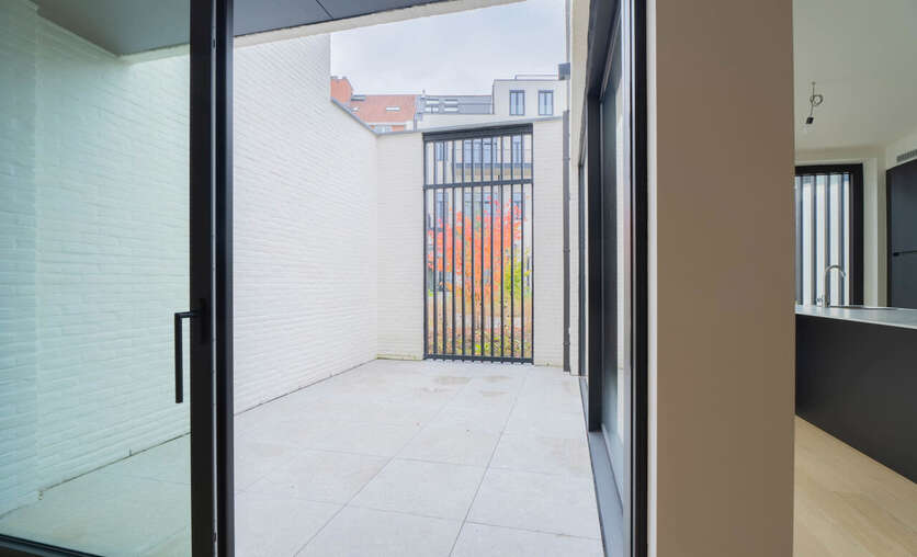 Een centraal gelegen patio brengt niet alleen extra licht binnen, maar zorgt ook voor een aangename, luchtige sfeer in de woning. Op de eerste verdieping bevinden zich drie volwaardige kamers, waaronder een master bedroom met een eigen dressing en een aansluitende badkamer. Daarnaast is er op deze verdieping nog een tweede, volledig afgewerkte badkamer. Bovenaan de woning geniet je van een extra terras, een perfecte plek om tot rust te komen.