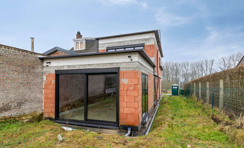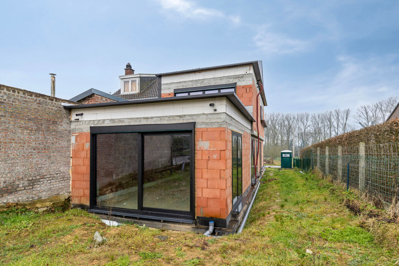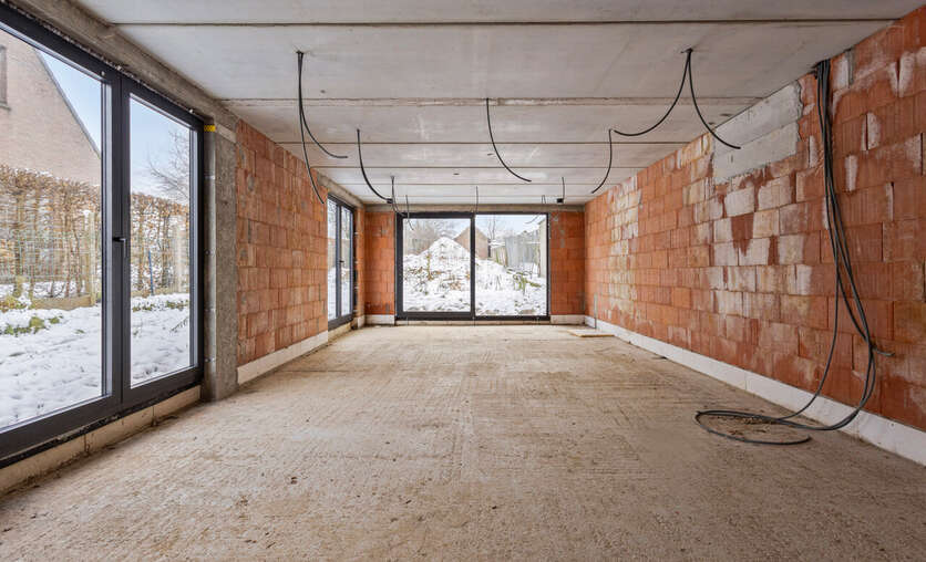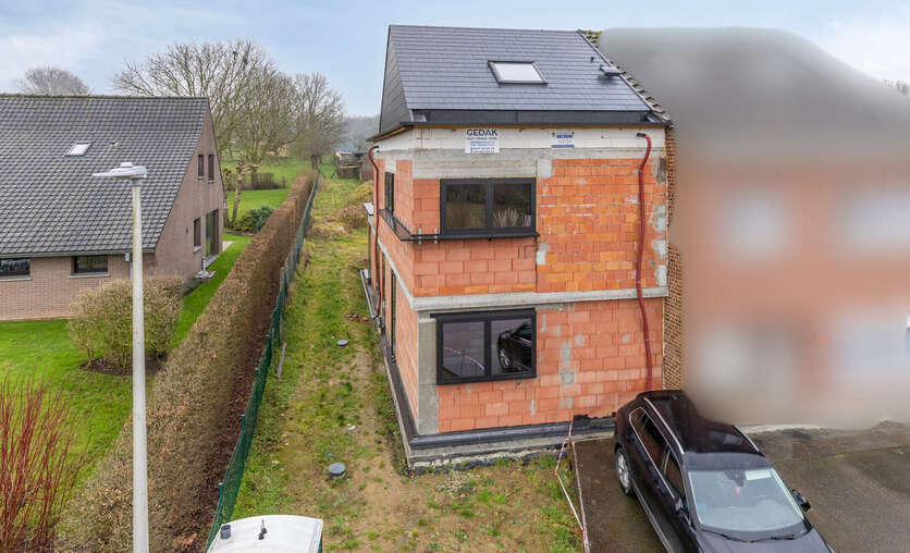 Prijs incl. afwerking! 6% BTW mogelijk! Deze casco-winddichte woning zal nog afgewerkt worden. De woning bestaat uit een inkomhal, een apart toilet, een slaapkamer met badkamer op het gelijkvloers, een ruime woonkamer met eetplaats en open keuken, een berging. Op de eerste verdieping zijn er 2 slaapkamers waarvan 1 met dressing, een ruime badkamer en een apart toilet. De ruime zolder is toegankelijk via een vaste trap en kan dus ook als slaapkamer dienen. Vanuit de woonkamer heeft u toegang tot de zuidoost georiënteerde tuin.