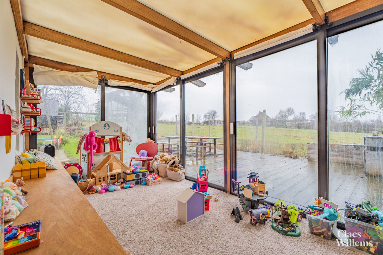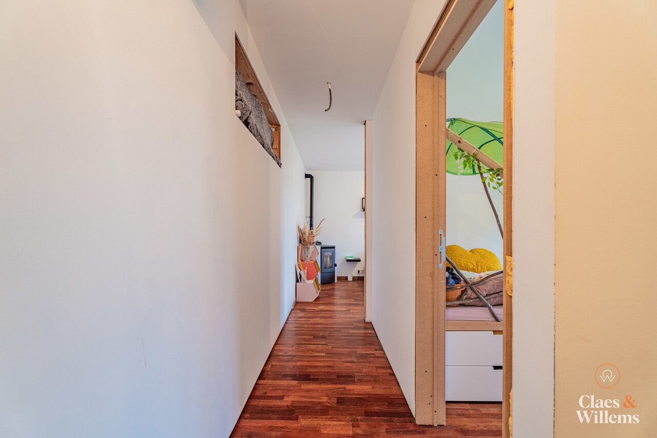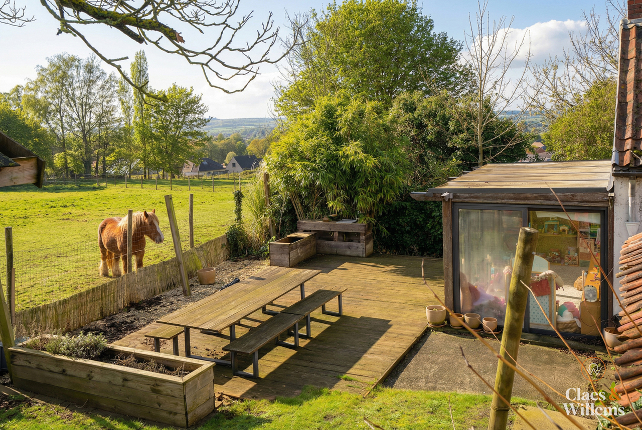 Welkom in deze vrijstaande, verder af te werken woning met gezellige tuin op de Krekelenberg te Halle, vlak naast het Lembeekbos en op een boogscheut van het befaamde Hallerbos. Gelegen in een doodlopende, rustige straat maar toch dichtbij belangrijke uitvalswegen en voorzieningen. Op de gelijkvloers vindt u de ruime leefruimte en de keuken, die gekenmerkt worden door een stijlvolle parketvloer en omgeven zijn door grote ramen, die veel natuurlijk licht binnenlaten. Aansluitend bevindt zich een grote hal die de aansluiting vormt naar enerzijds de bovenverdieping en anderzijds de gelijkvloerse aanbouw (+/- 2017). In de aanbouw vinden we een apart toilet, een handige berging/waskamer, een stijlvolle badkamer met inloopdouche en 2 slaapkamers met zicht op de tuin. Op de bovenverdieping bevindt zich een tweede badkamer met ligbad en toilet, nog 2 ruime kamers - die momenteel als dressing en bureau gebruikt worden - die tal van opties bieden bijvoorbeeld als slaapgelegenheid of hobbyruimte, en een mezzanine die uitgeeft boven de leefruimte. Verder beschikt de woning over een gezellige veranda en een praktische kelder. Verwarming in de woning via pelletkachels. De grote tuin en veel parkeergelegenheid is ideaal voor wie graag gasten ontvangt. Aparte garage en atelier. Grote troef van de woning is de unieke ligging en de groene, rustige omgeving. Ideaal voor wie zijn droomhuis zoekt in de natuur maar toch dicht genoeg bij belangrijke voorzieningen. Gelegen in agrarisch gebied, vergunde plannen voor uitbreiding zijn beschikbaar. Mis je kans niet om deze woning te bezichtigen en neem contact op voor een bezoek. We kijken ernaar uit om jullie te verwelkomen.