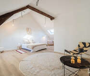 Op de zolderverdieping vind je een tweede douchekamer, een technische ruimte met centrale verwarming, ventillatiesysteem type D en een extra ruime slaapkamer van maar liefst 37 m².