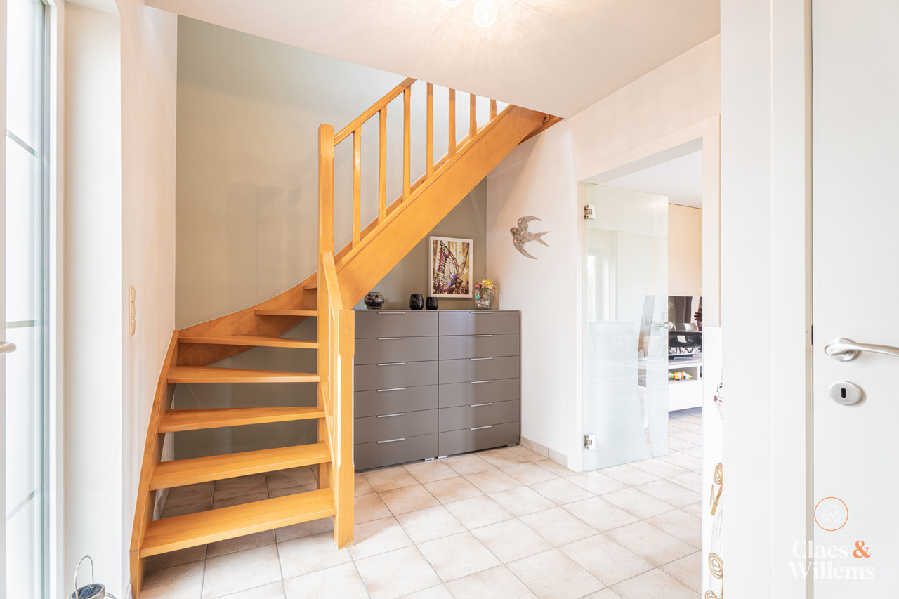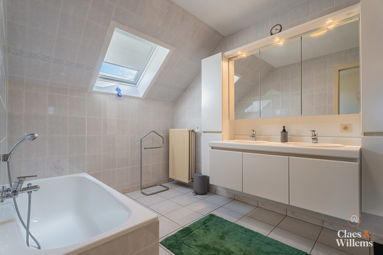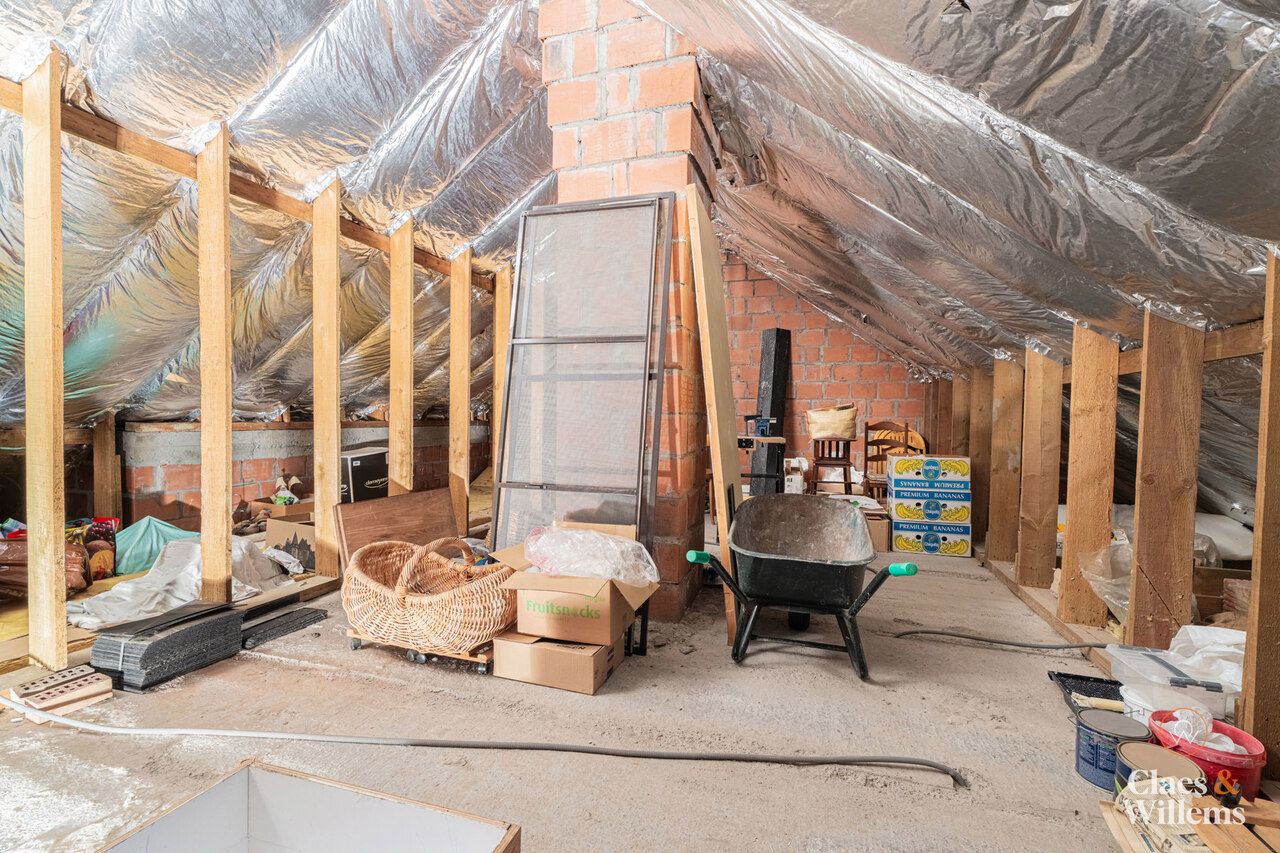 Op de eerste verdieping vindt u een nachthal met apart toilet, drie volwaardige slaapkamers en een badkamer uitgerust met zowel een douche als een bad. De woning beschikt bovendien over een zeer ruime zolder, die tal van mogelijkheden biedt, zoals extra opslagruimte of het creëren van een bijkomende kamer.