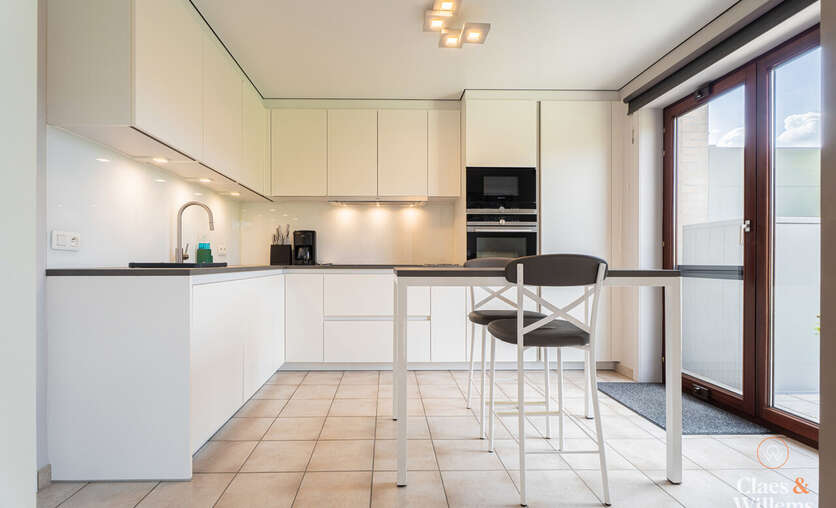Vanuit de keuken heeft u toegang tot de ruime garage, wat zorgt voor extra comfort en bergruimte.
