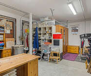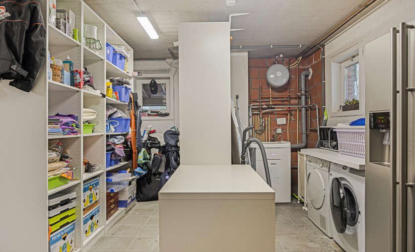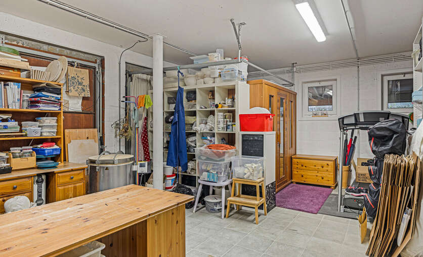 Op de verdieping bevinden zich vier slaapkamers (20 m², 12 m² en twee van ca. 15 m²) en een vernieuwde badkamer met inloopdouche en dubbele wastafel. De zolder met trektrap biedt extra opbergruimte. Buiten vindt u een ruim tuinhuis tegenover het zwembad, een carport met laadpaal, twee aangelegde parkeerplaatsen en extra parkeerruimte op de oprit.
