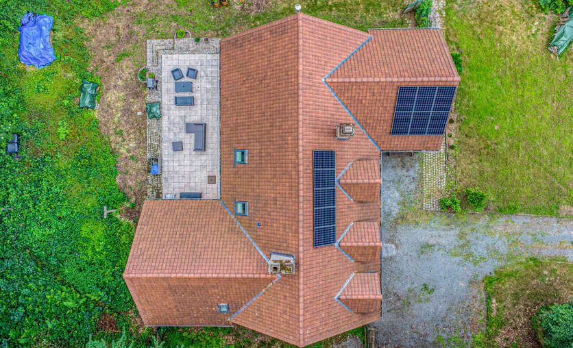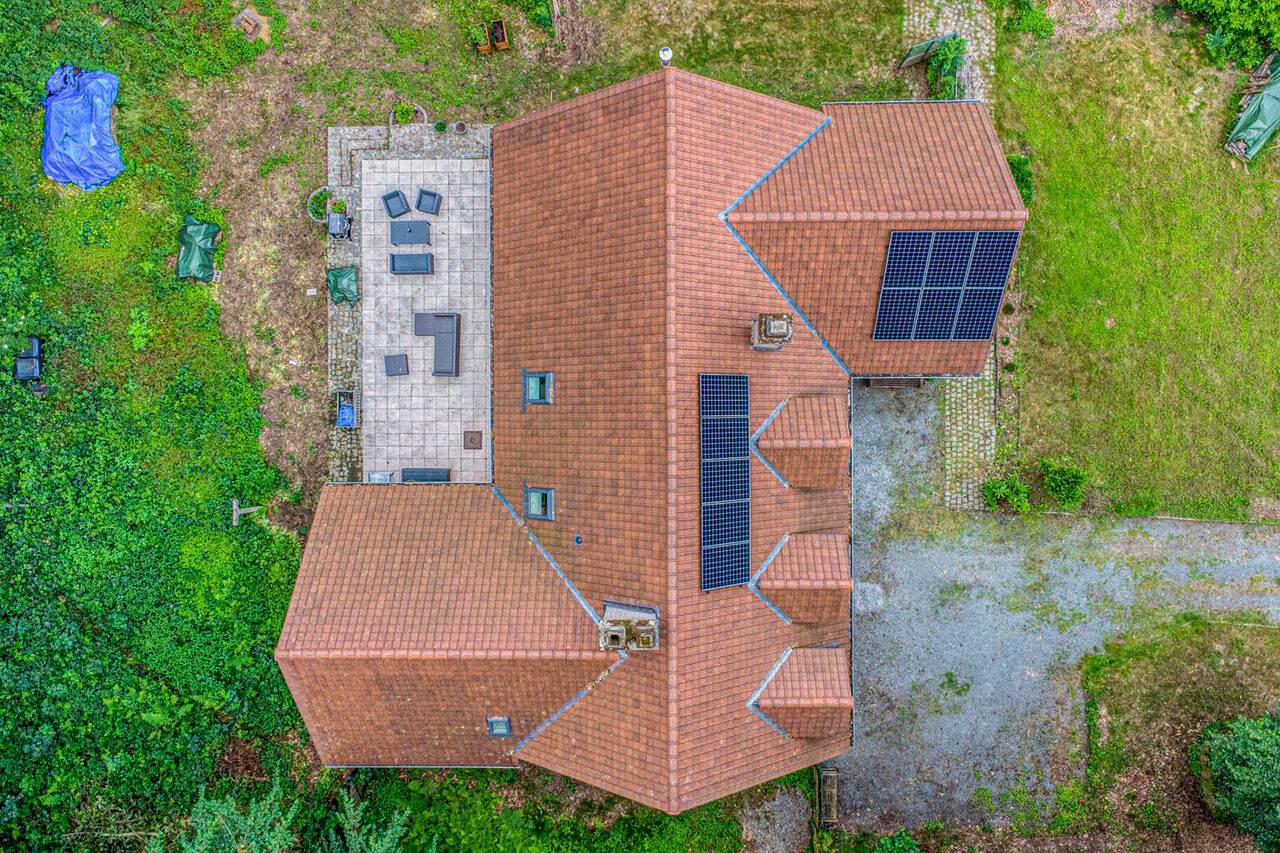 Gelegen in een doodlopende straat bevindt deze in 2024 gerenoveerde woning zich op een volledig omheind perceel van ca. 60 are, deels bebost, met automatische poort. De omgeving is groen, rustig en privé, in het hart van het gewilde Bois de Strihoux, in een straat met weinig bebouwing en grote percelen.
