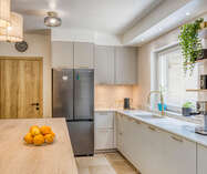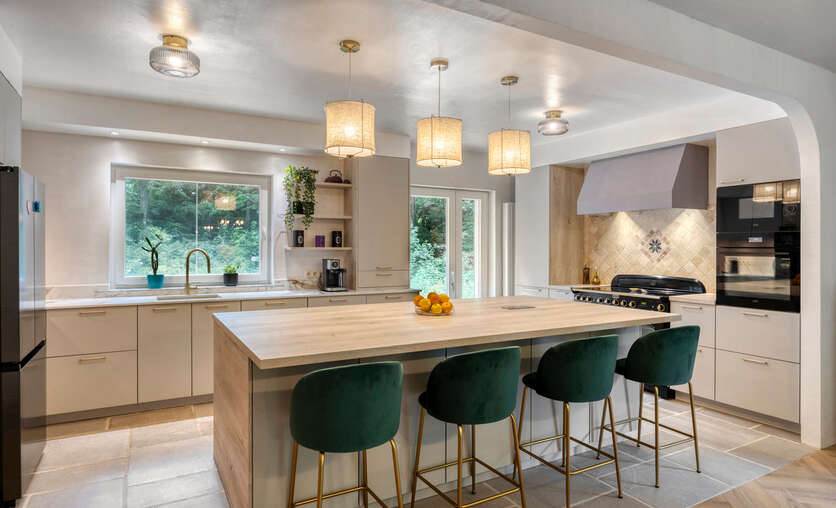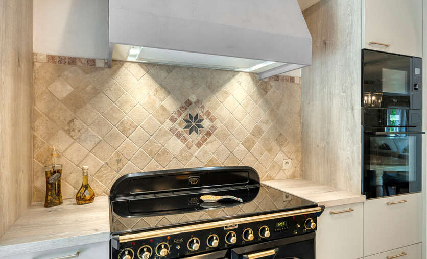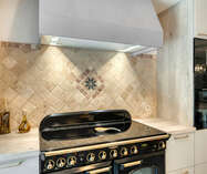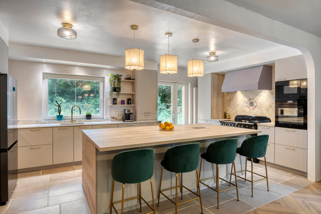 • Open, volledig uitgeruste keuken (Falcon-fornuis, dubbele koelkast, stoomoven)