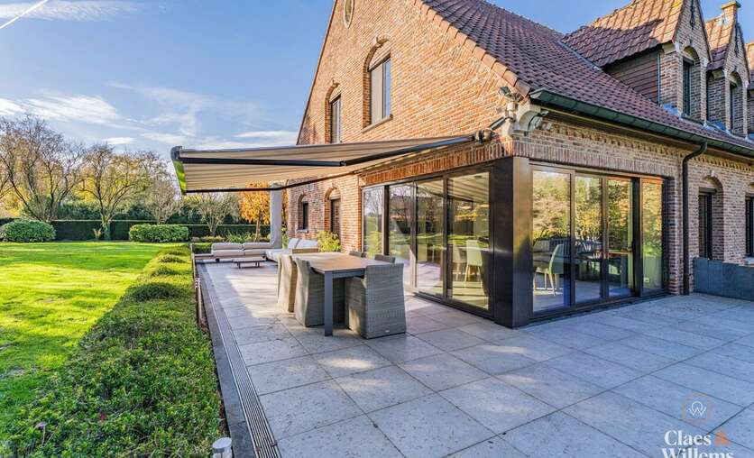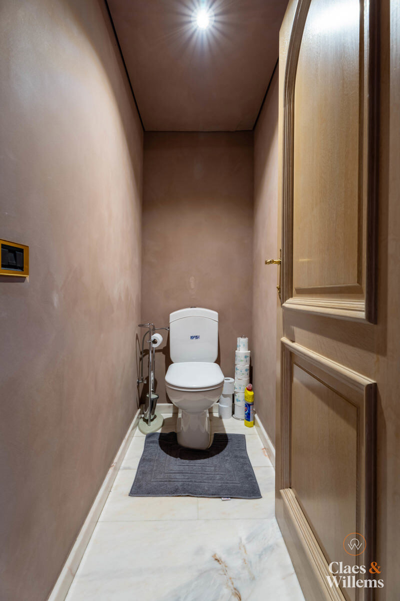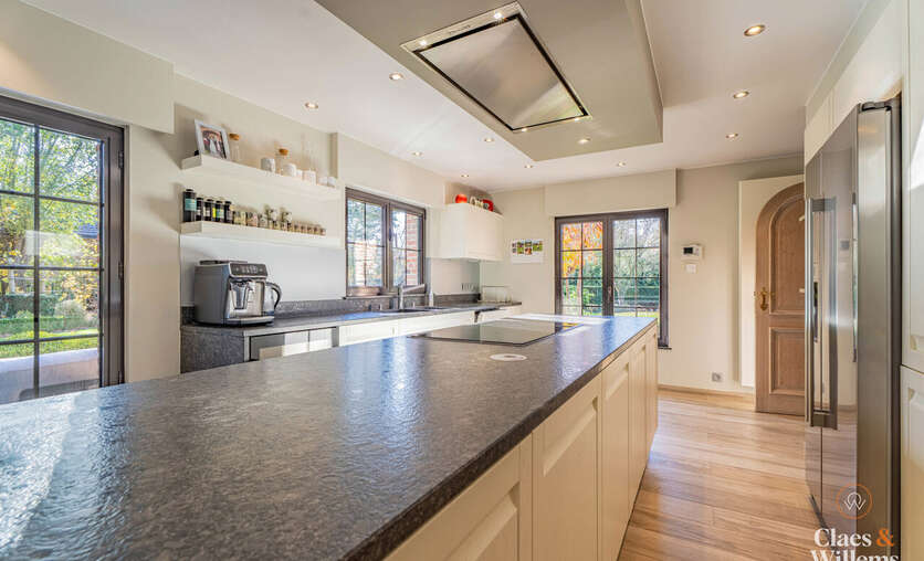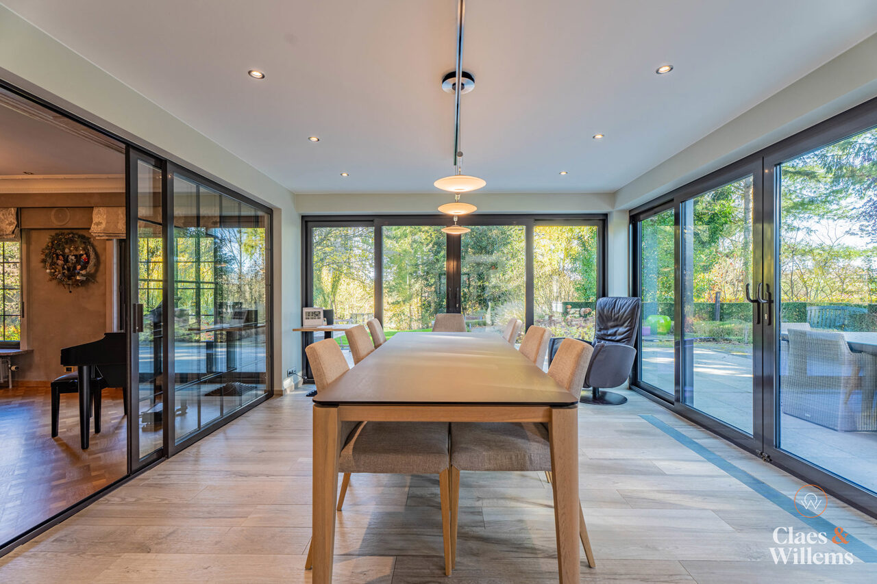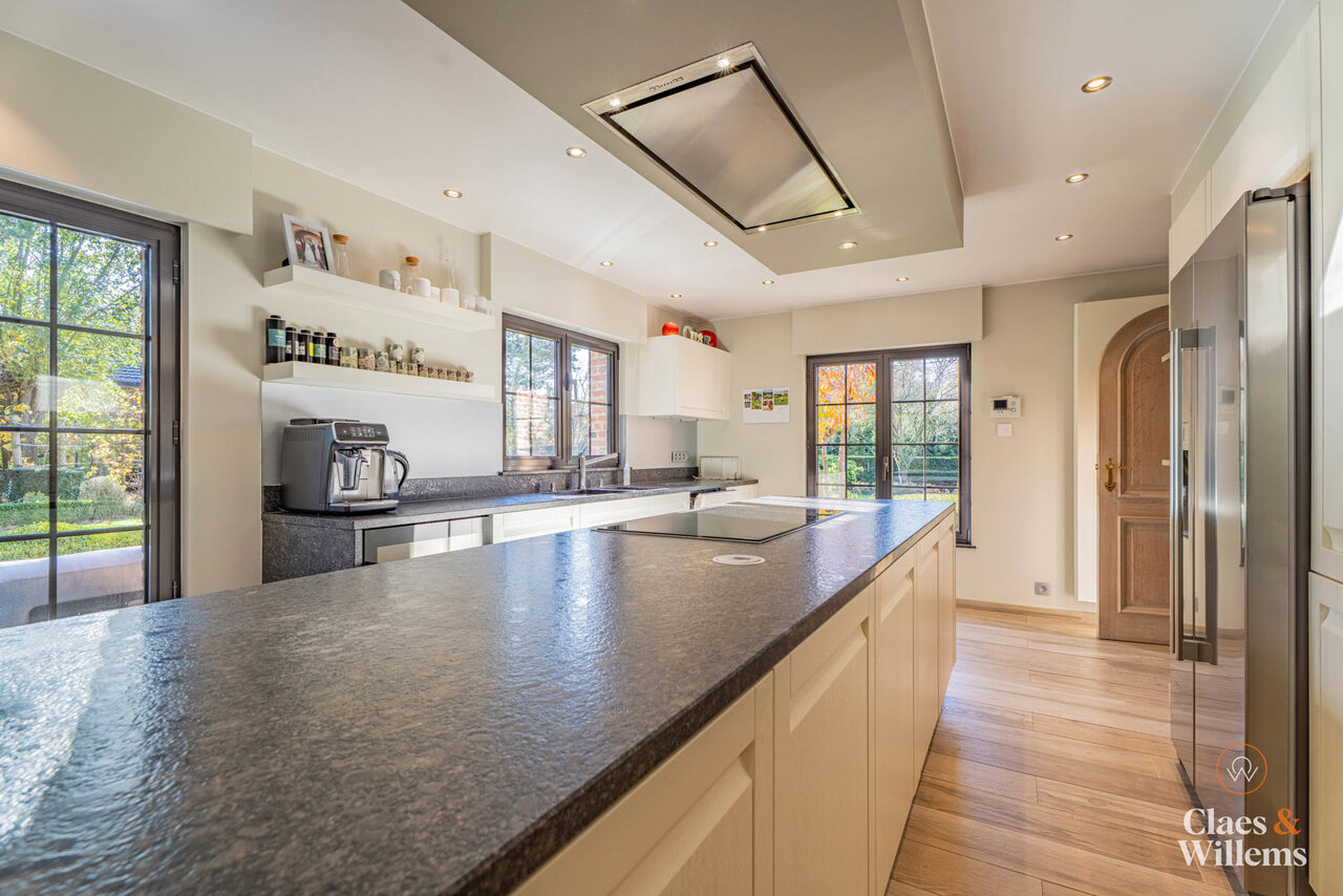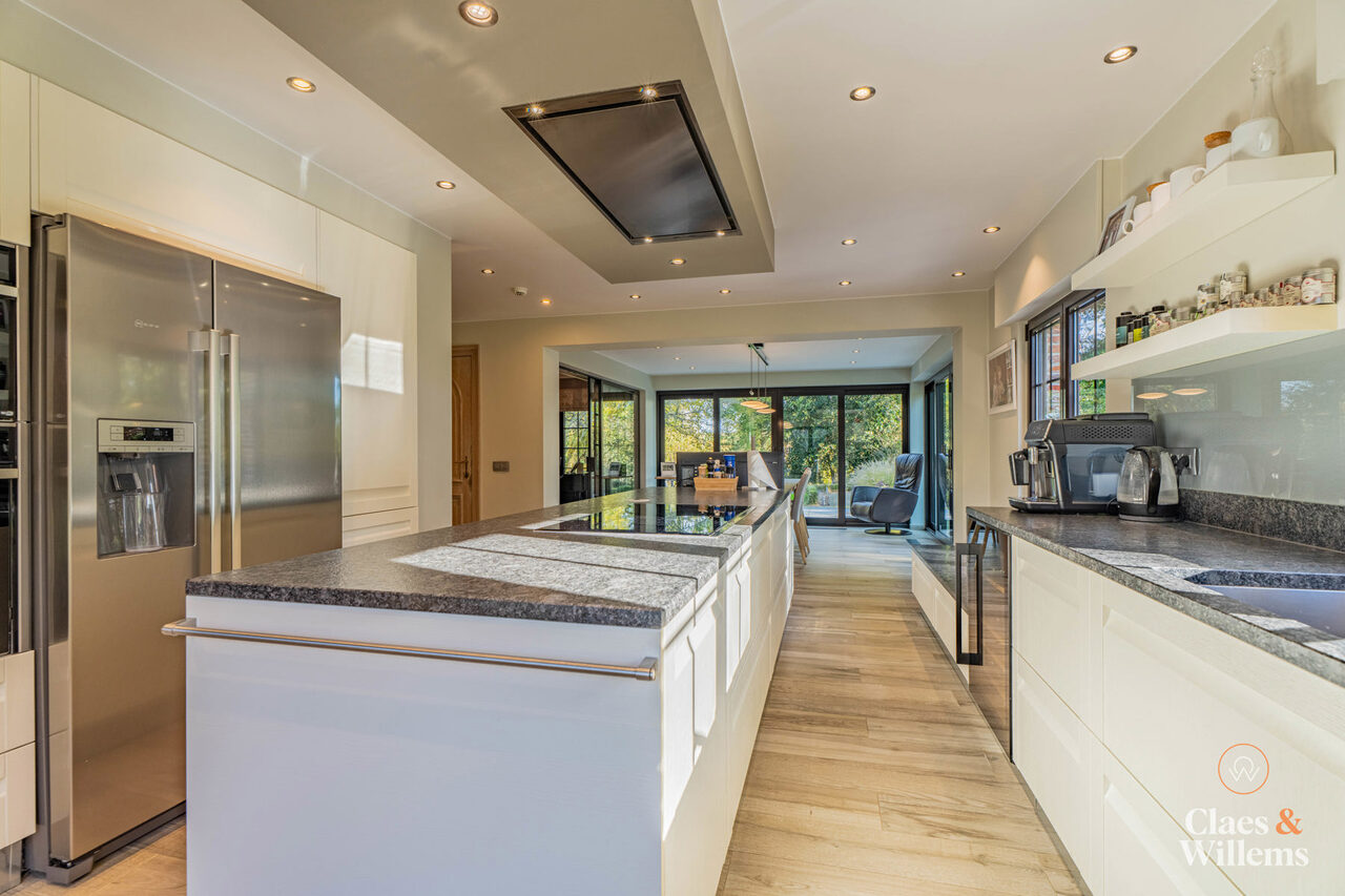 Bij het betreden van de woning kom je in een lichte en ruime inkomhal met gastentoilet. De gezellige woonkamer met grote eetplaats biedt uitzicht op de tuin en sluit aan op een volledig uitgeruste, aparte keuken met tweede eetruimte – perfect voor gezinnen die ruimte en comfort belangrijk vinden.