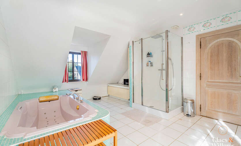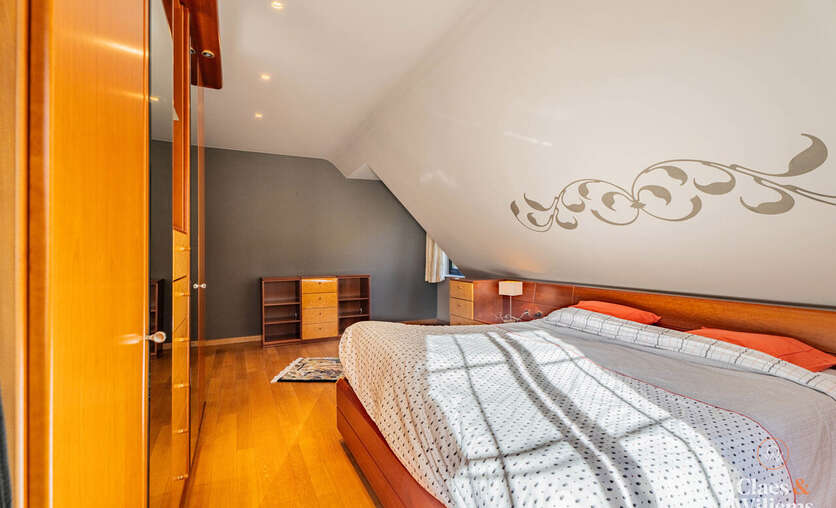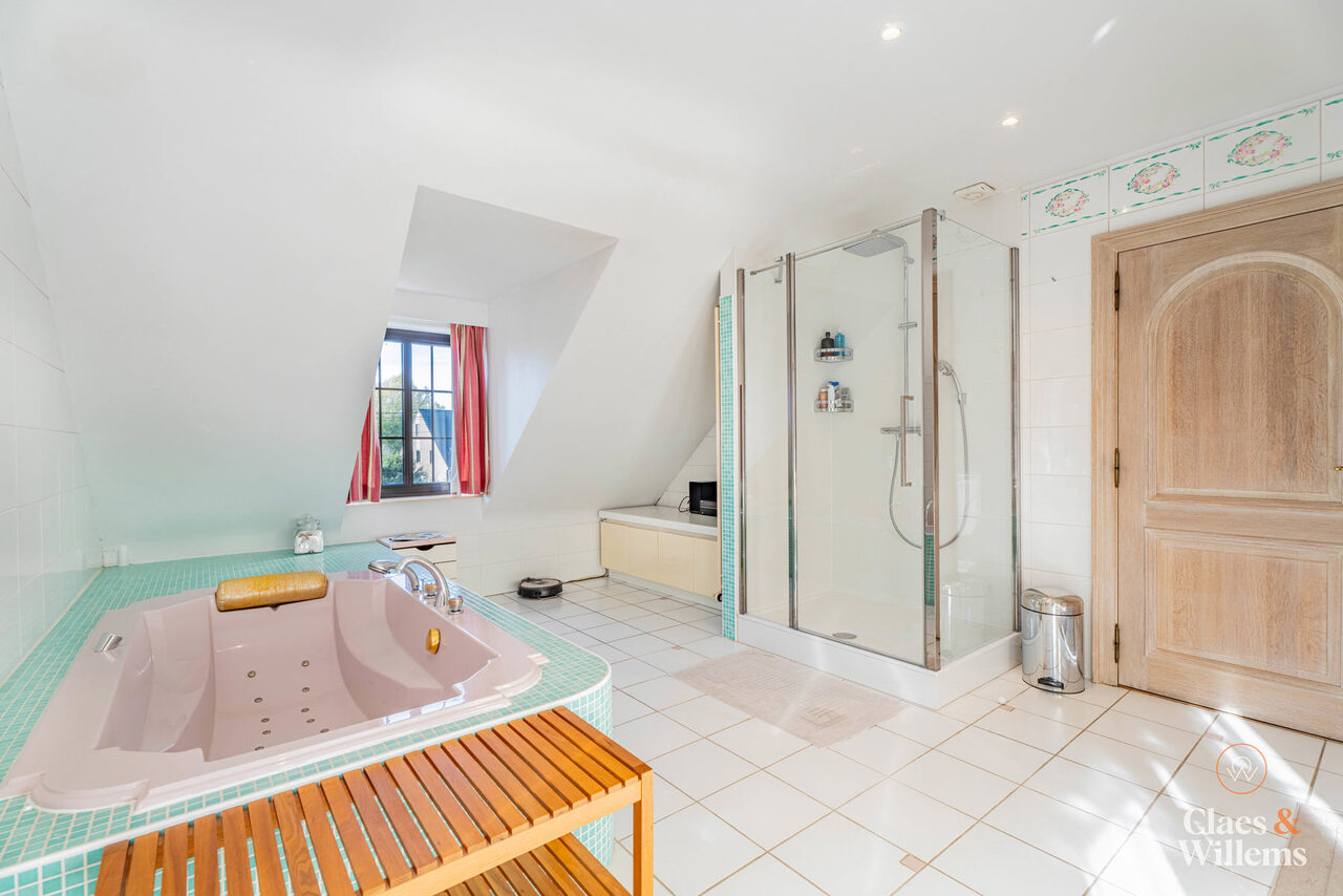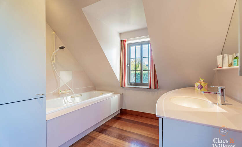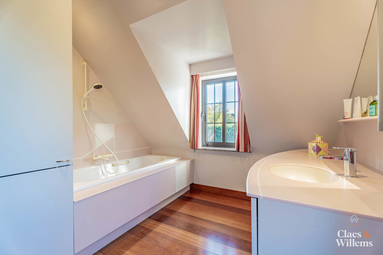 Op de eerste verdieping bevinden zich vier volwaardige slaapkamers, waaronder één master bedroom met ensuite badkamer. Daarnaast is er een tweede badkamer met ligbad, dubbele wastafel en douche.