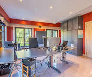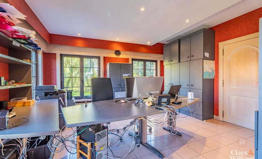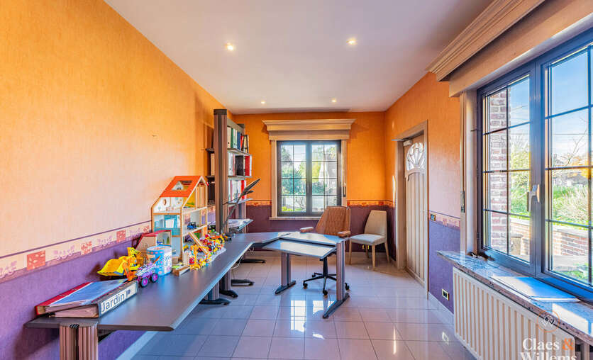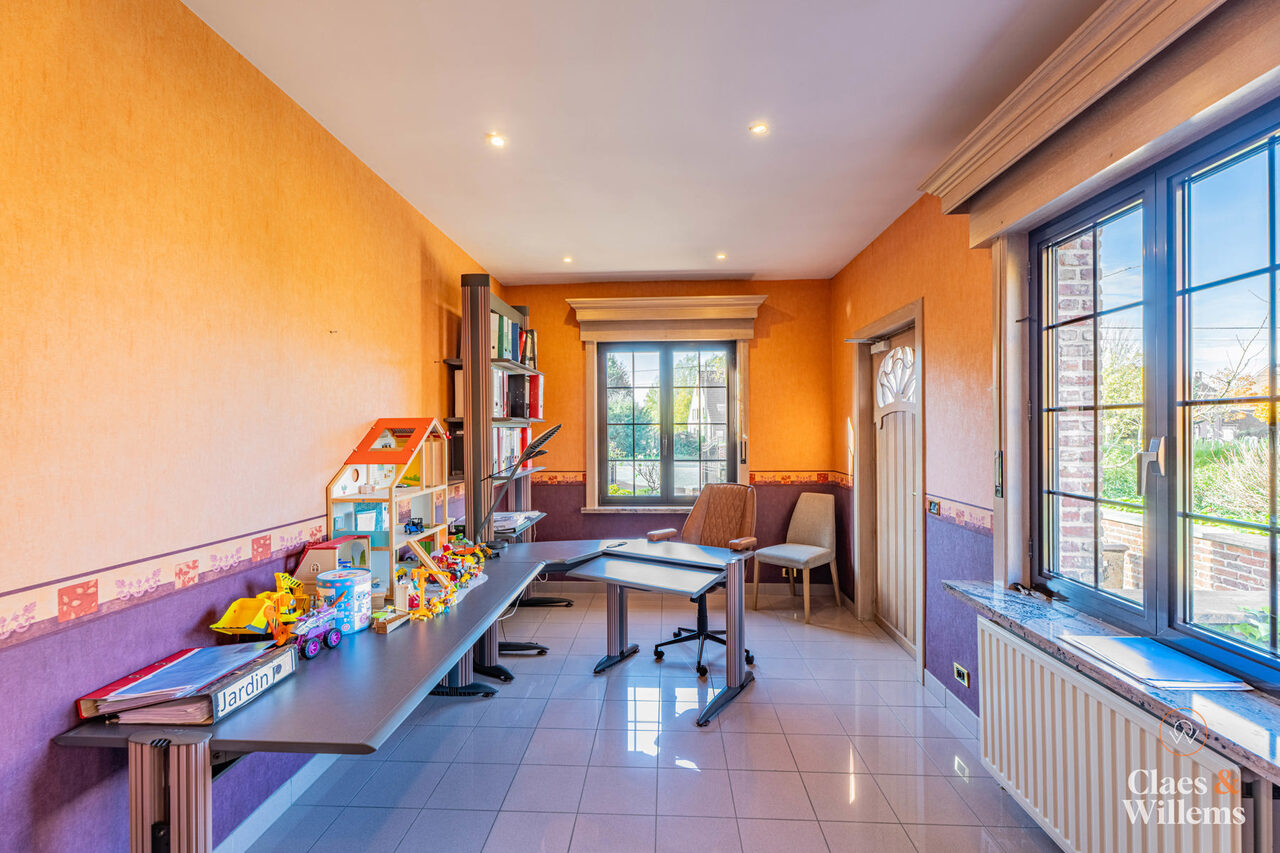 Het gelijkvloers beschikt over een volwaardige praktijk- of kantoorruimte met aparte ingang, ideaal voor een vrij beroep, zelfstandige activiteit of thuiswerk.