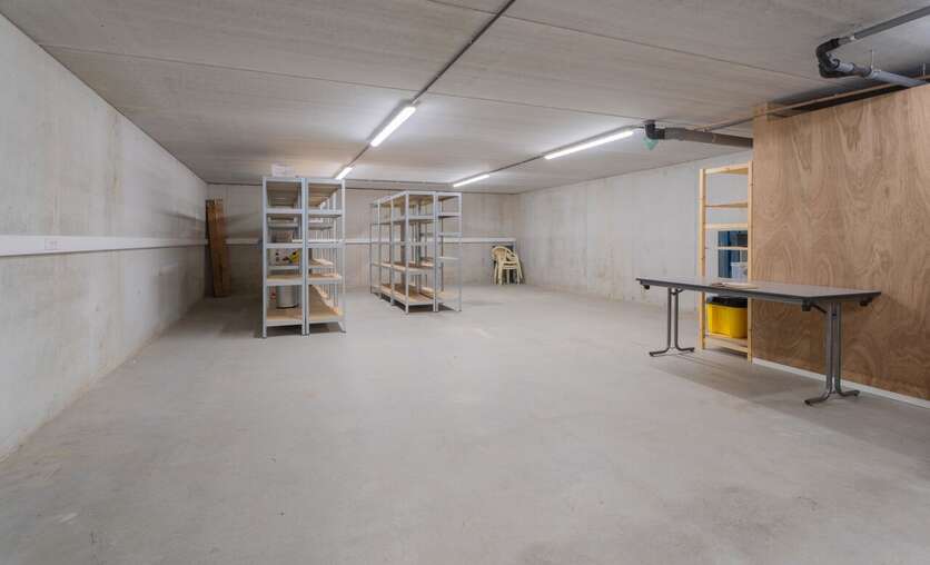 De villa in Kaprijke beschikt bovendien over een ruime garage met plaats voor twee wagens en een laadpaal voor elektrische voertuigen, aangevuld met extra parkeergelegenheid op de oprit. De kelder van maar liefst 83 m² biedt praktische bergruimte en kan perfect dienen als hobby- of ontspanningsruimte.